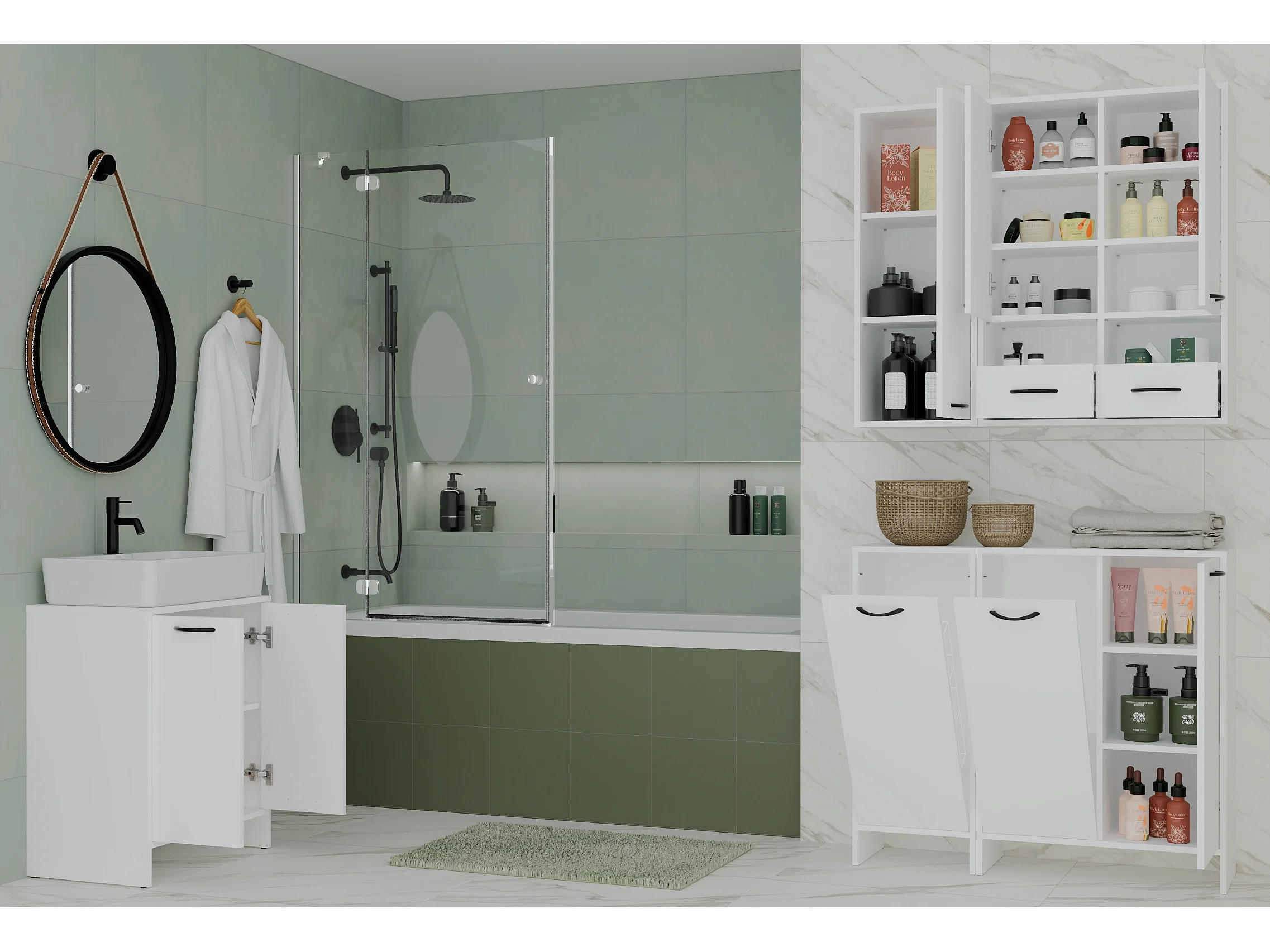 NINA - Armario de baño con cesto para la ropa - Blanco