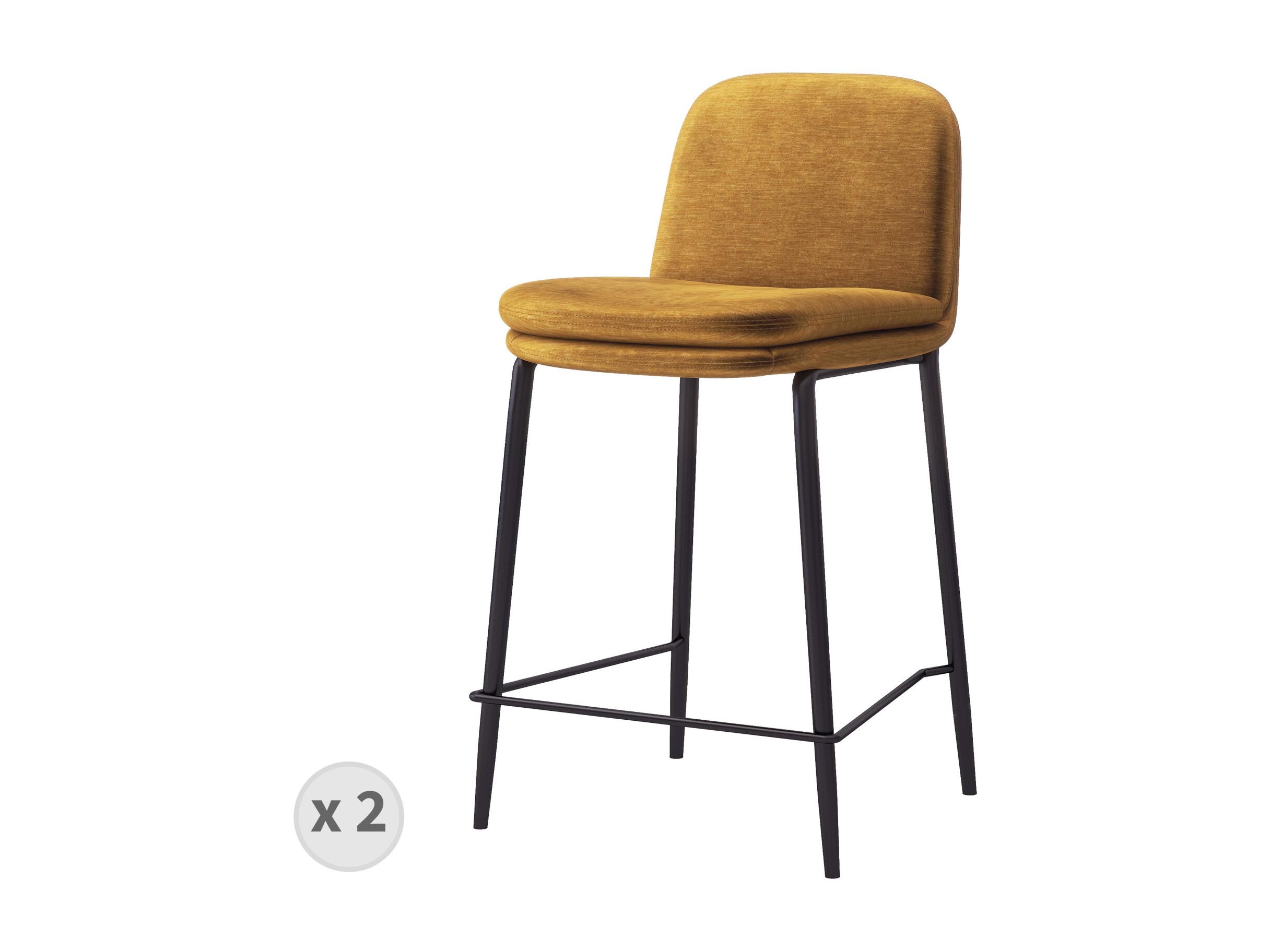 LEA-Taburete de bar de tela ocre y metal negro (x2)