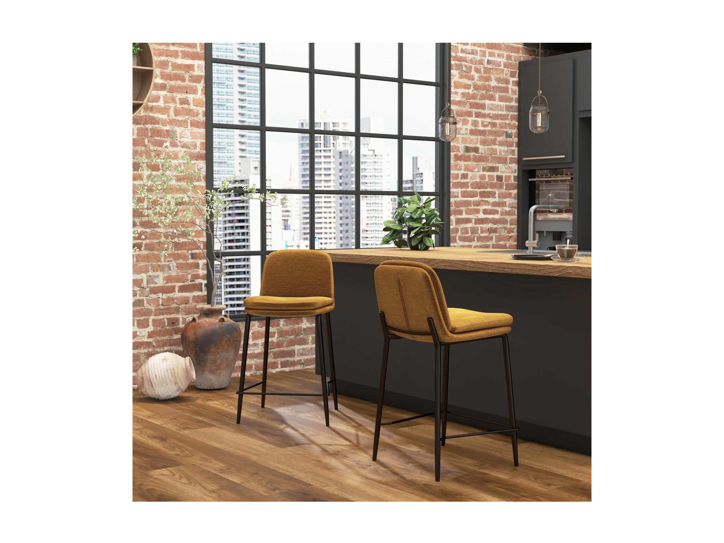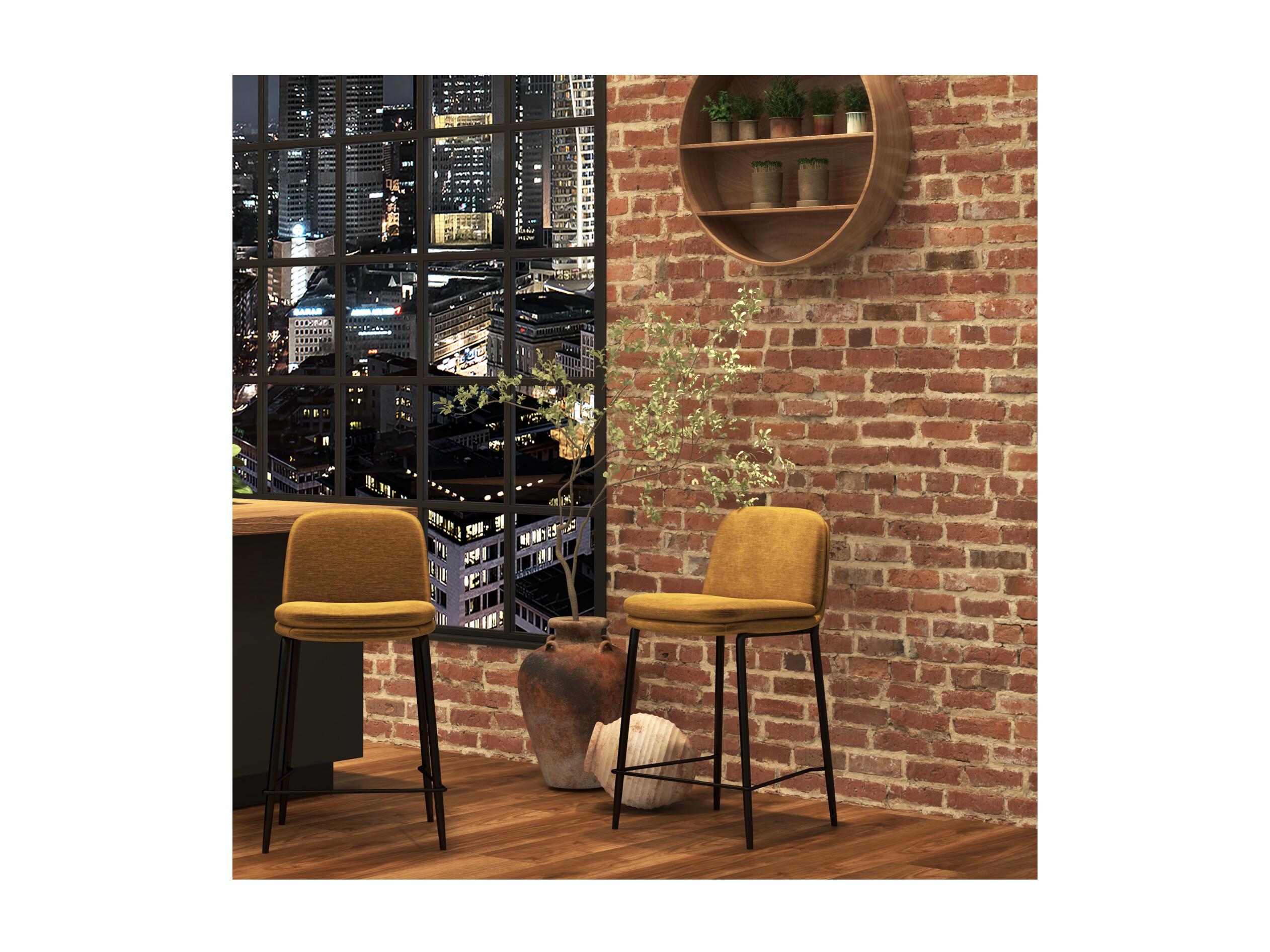 CANDICE-Silla de bar de tela mostaza y metal negro (x2)