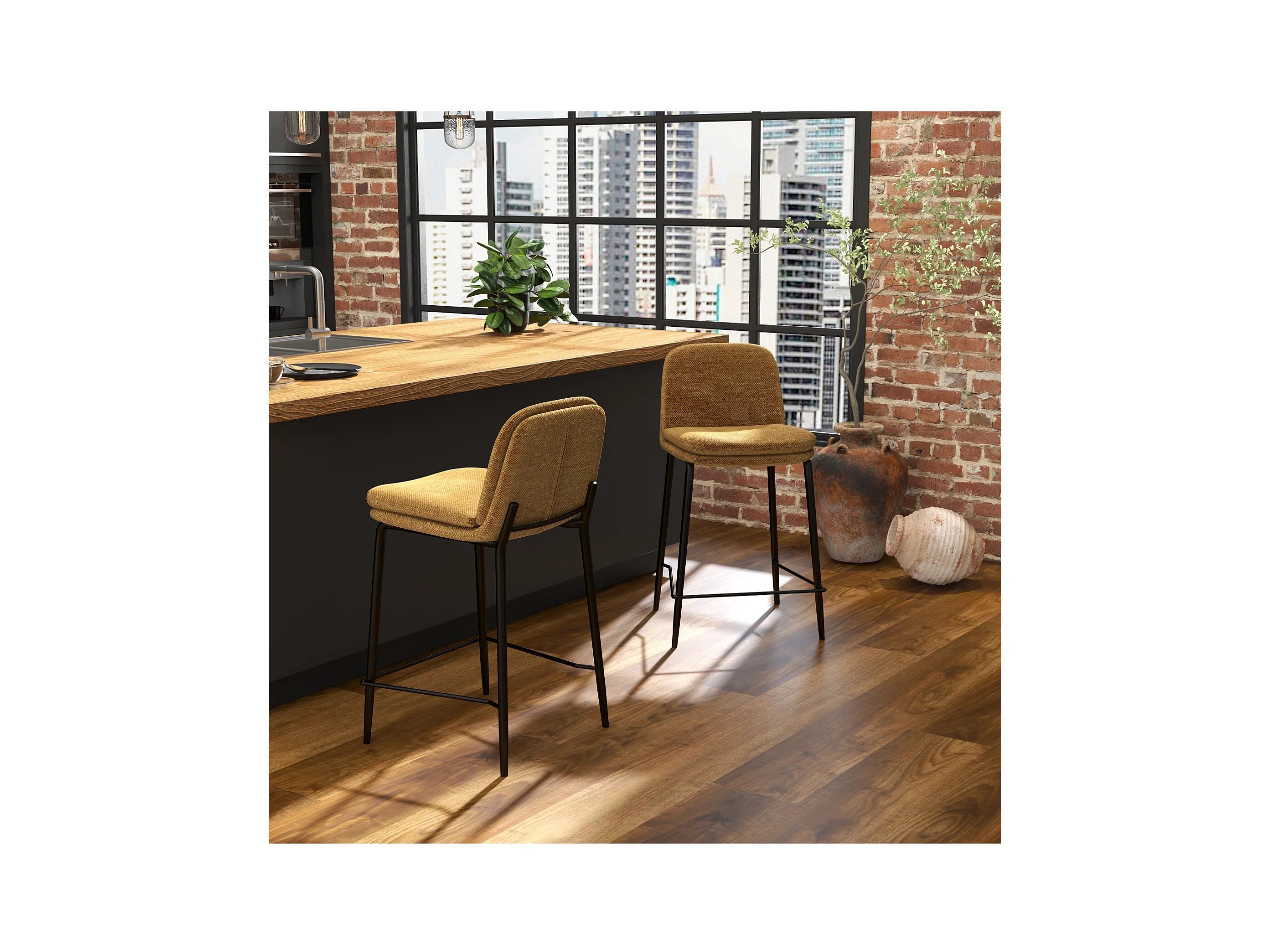 NOLAN-Silla de bar de tela Luxury Mostaza (x2)