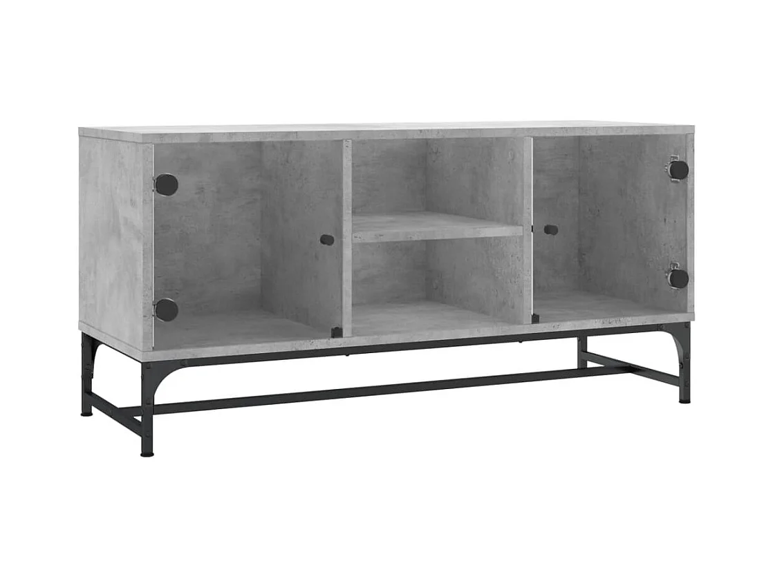 Nurmes Mueble de TV con puertas de vidrio gris hormigón 102x37x50 cm