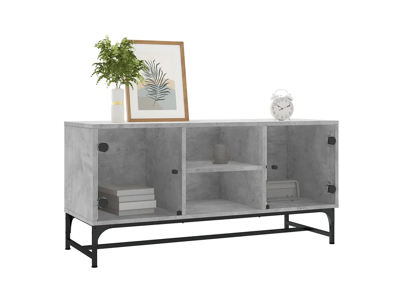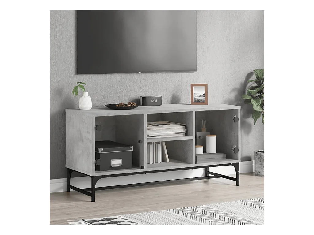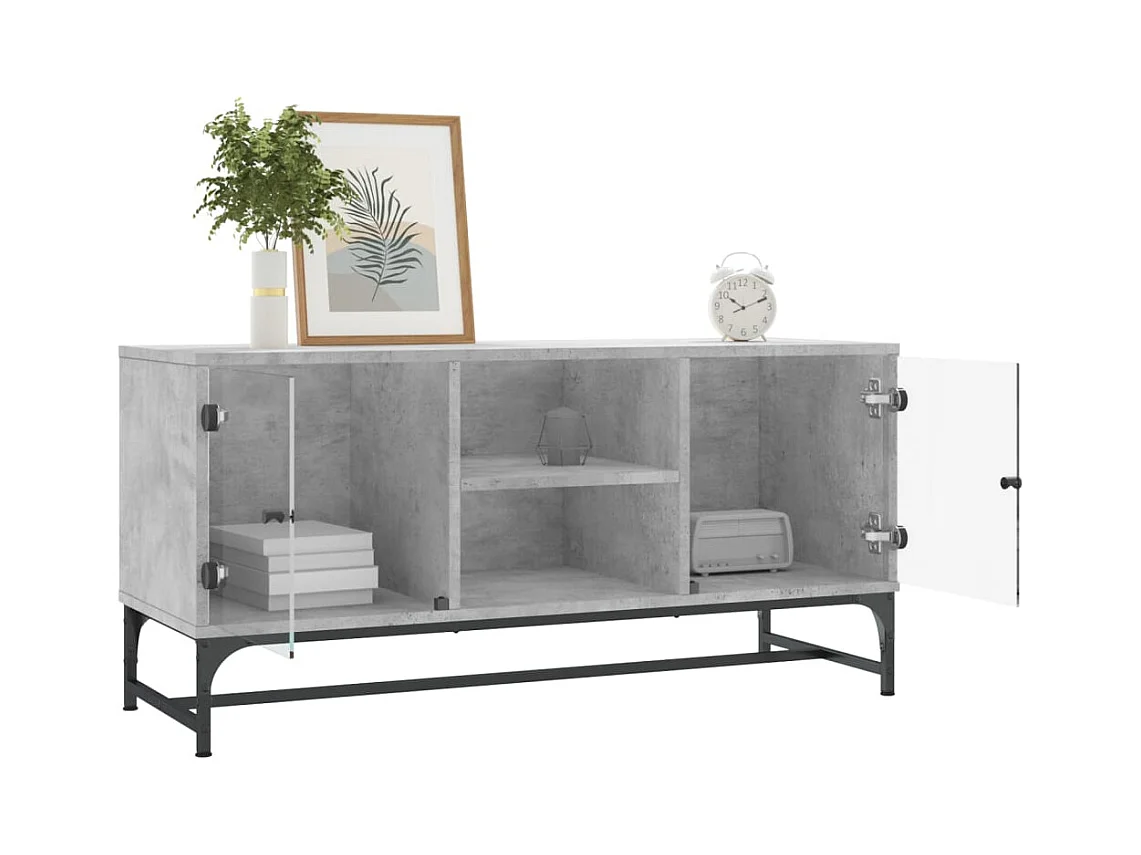 Ilgar Mueble de TV con puertas de vidrio gris hormigón 102x37x42 cm