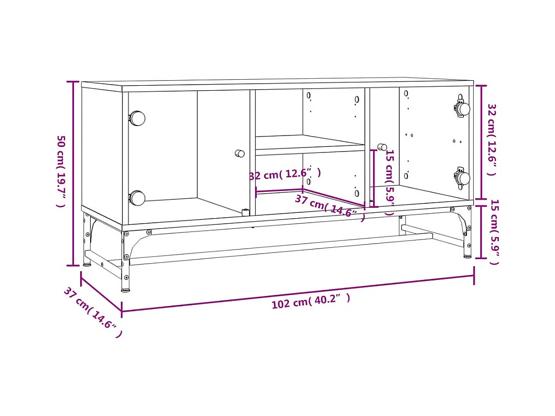 Ilgar Mueble de TV con puertas de vidrio gris Sonoma 102x37x42 cm