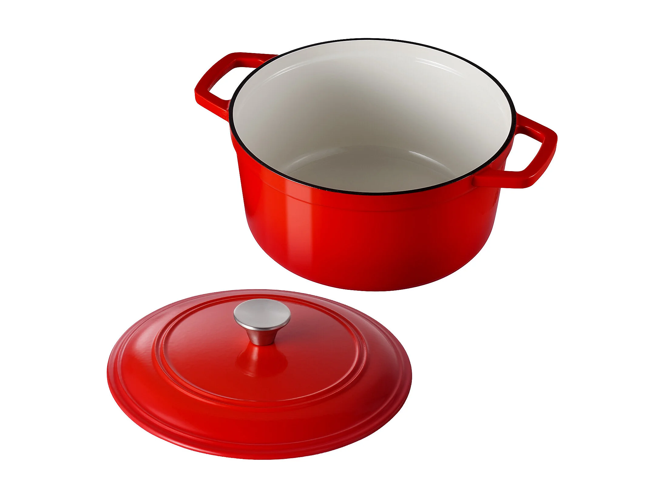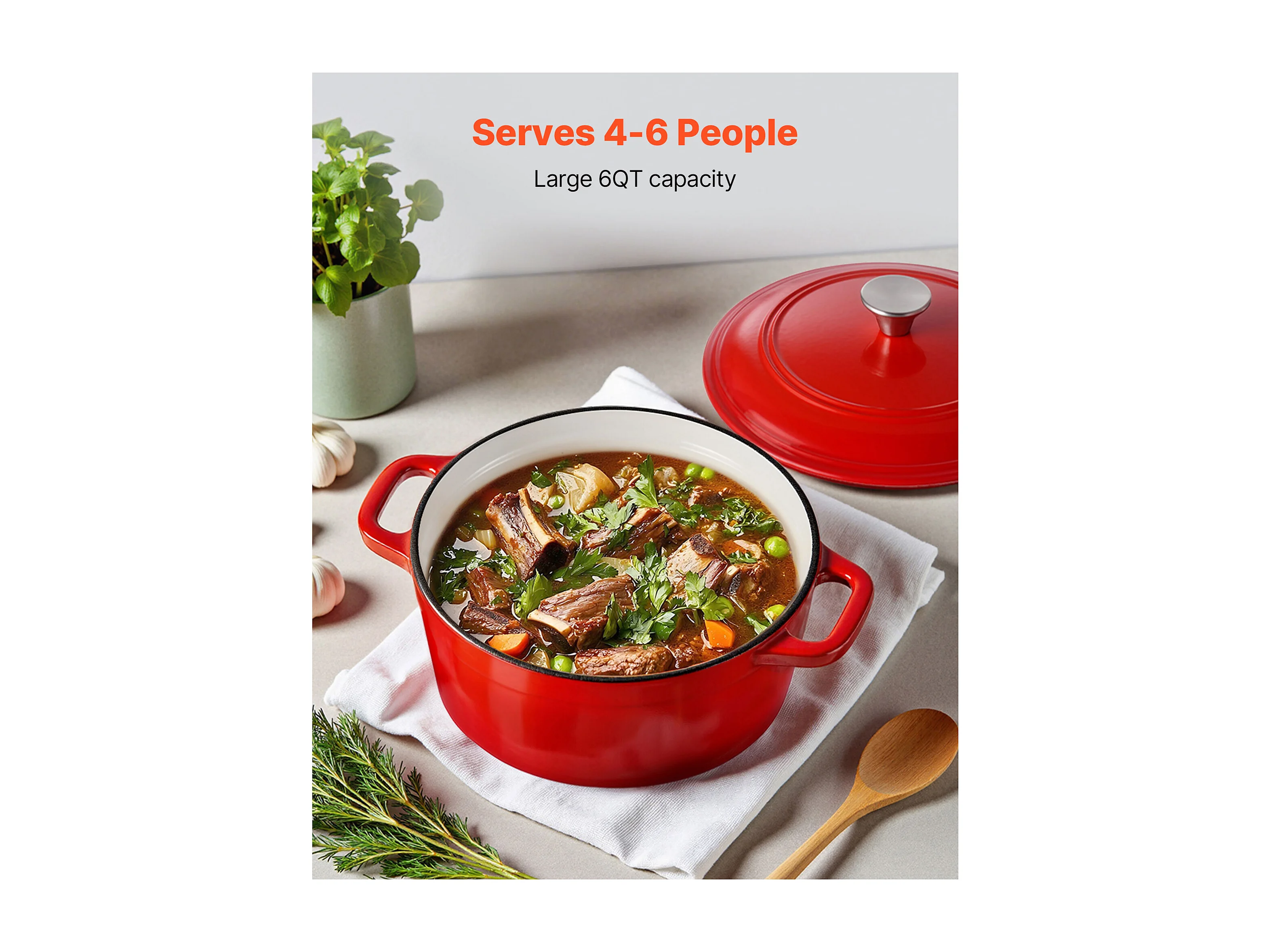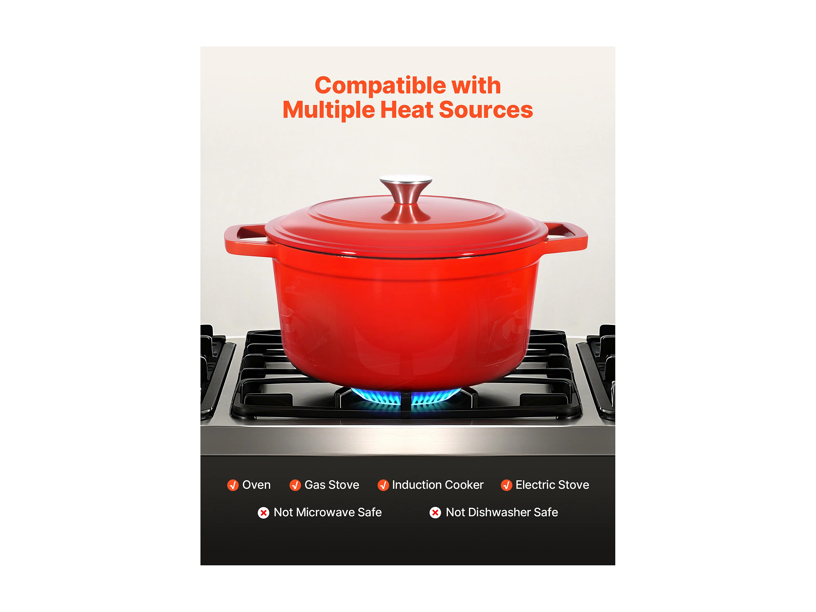Olla SucceBuy de Hierro Fundido 5,68 L, Cacerola Esmaltada con Tapa y Dos Asas, Robusta y Duradera, para Hornos de Inducción hasta 260 °C, Roja