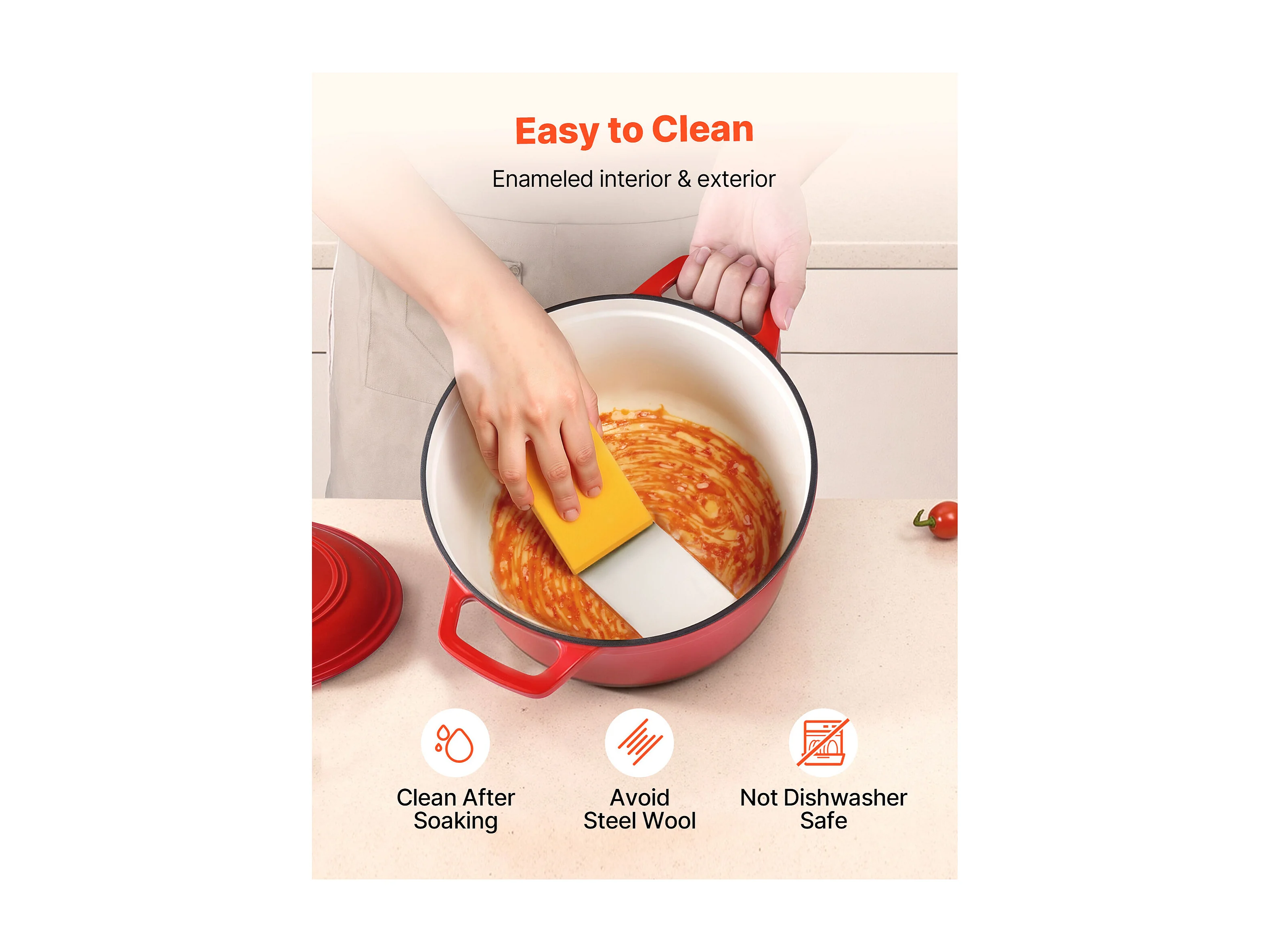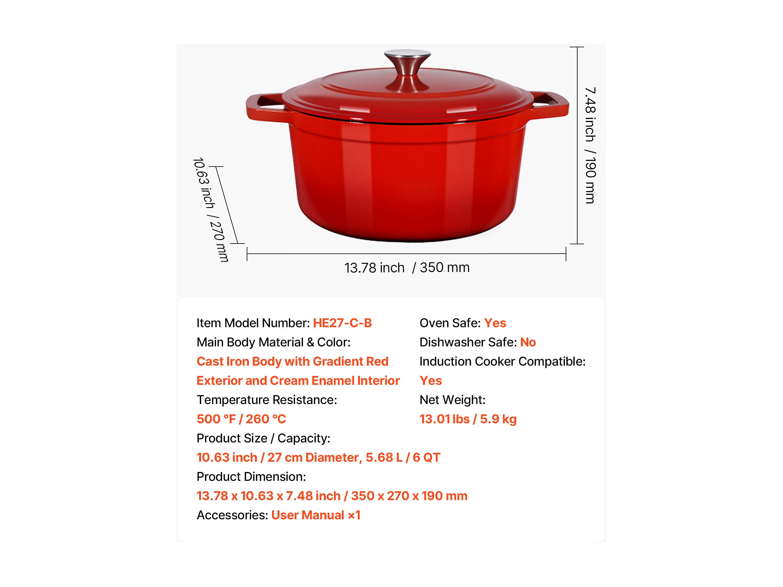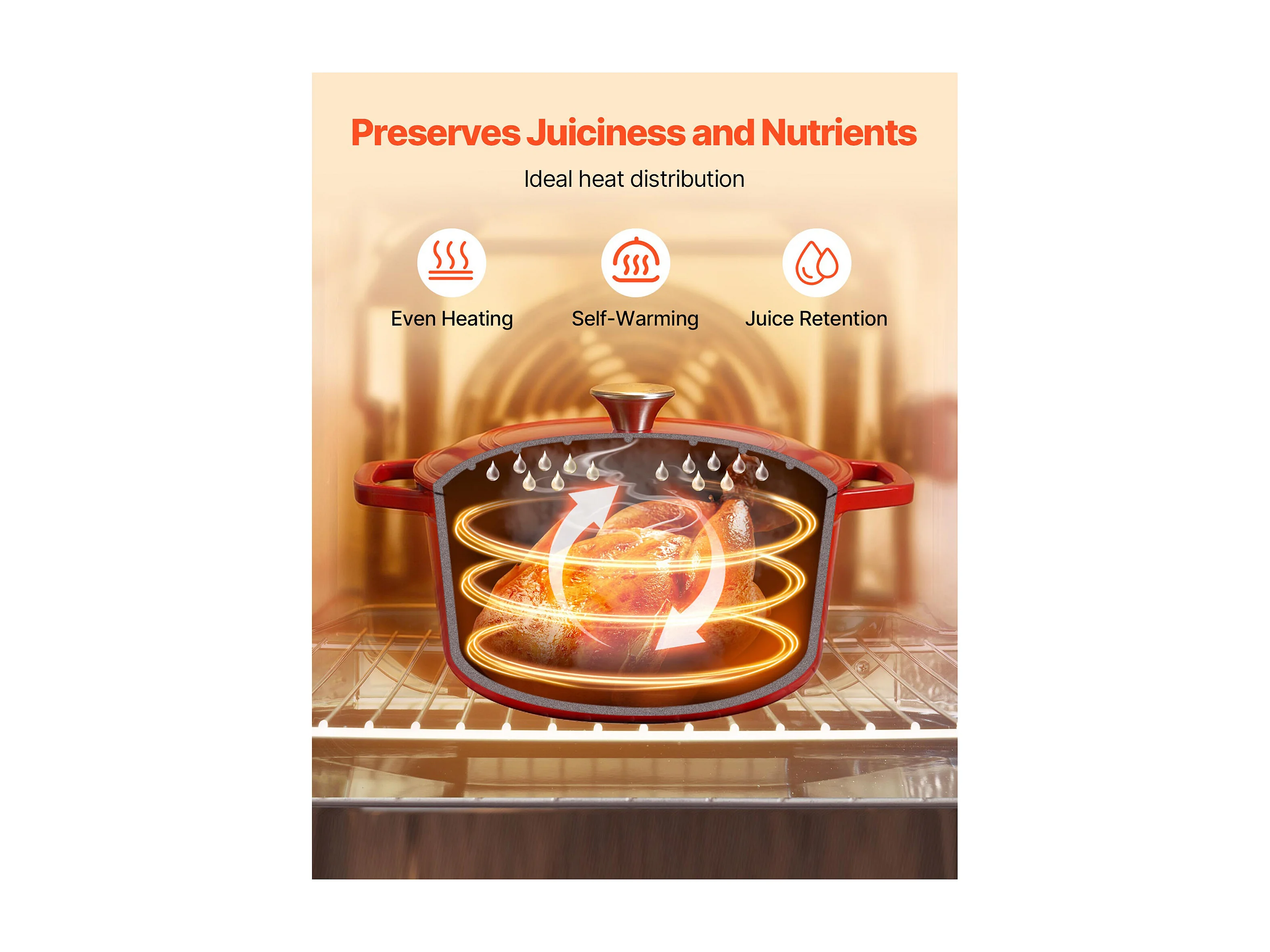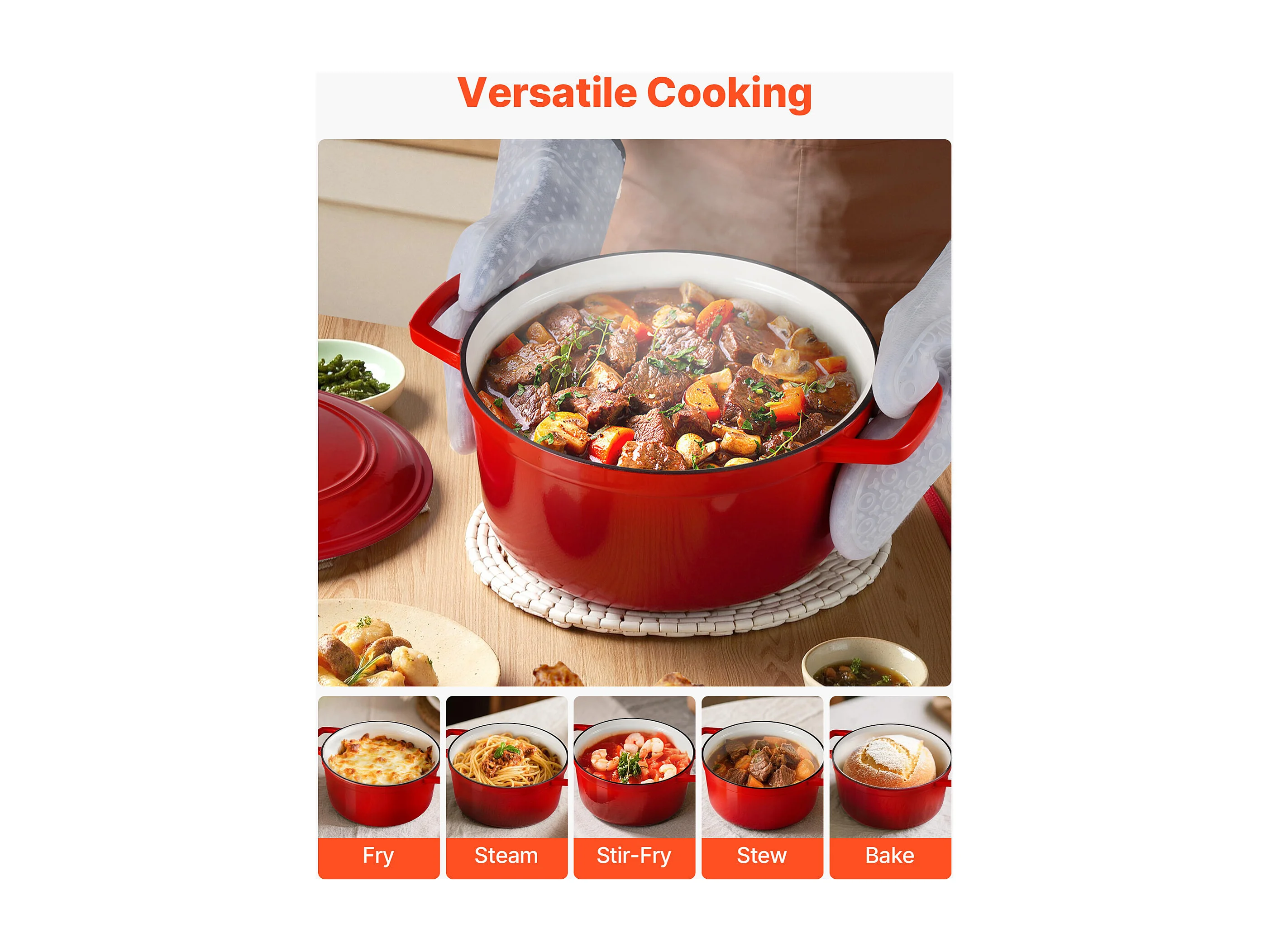 Olla SucceBuy de Hierro Fundido 5,68 L, Cacerola Esmaltada con Tapa y Dos Asas, Robusta y Duradera, para Hornos de Inducción hasta 260 °C, Roja
