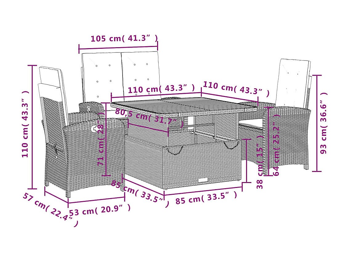 Onhaye Juego comedor jardín 4 piezas con cojines ratán sintético negro