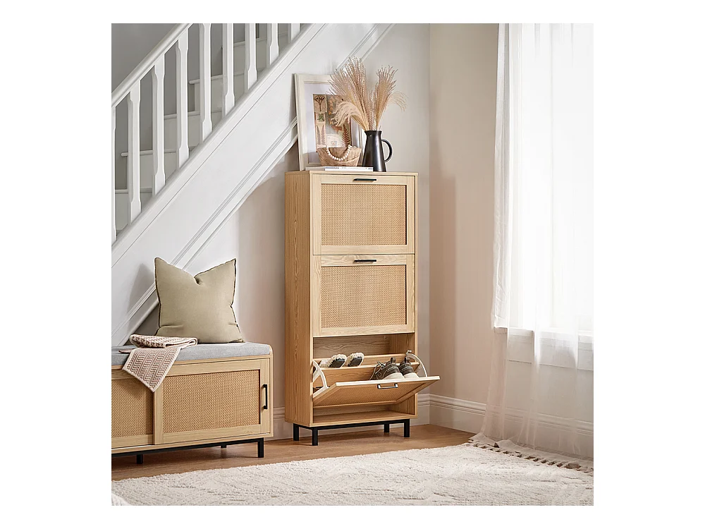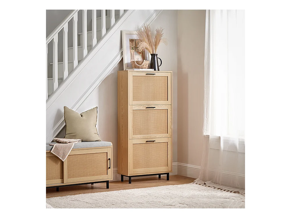 Zapatero de Ratán Organizador SucceBuy de Zapatos con 2 Cajones Abatibles y 1 Cajón Deslizante