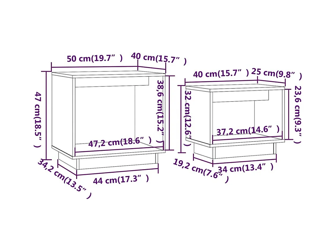 Oro Mesas de centro nido 2 piezas Blanco Madera de pino maciza