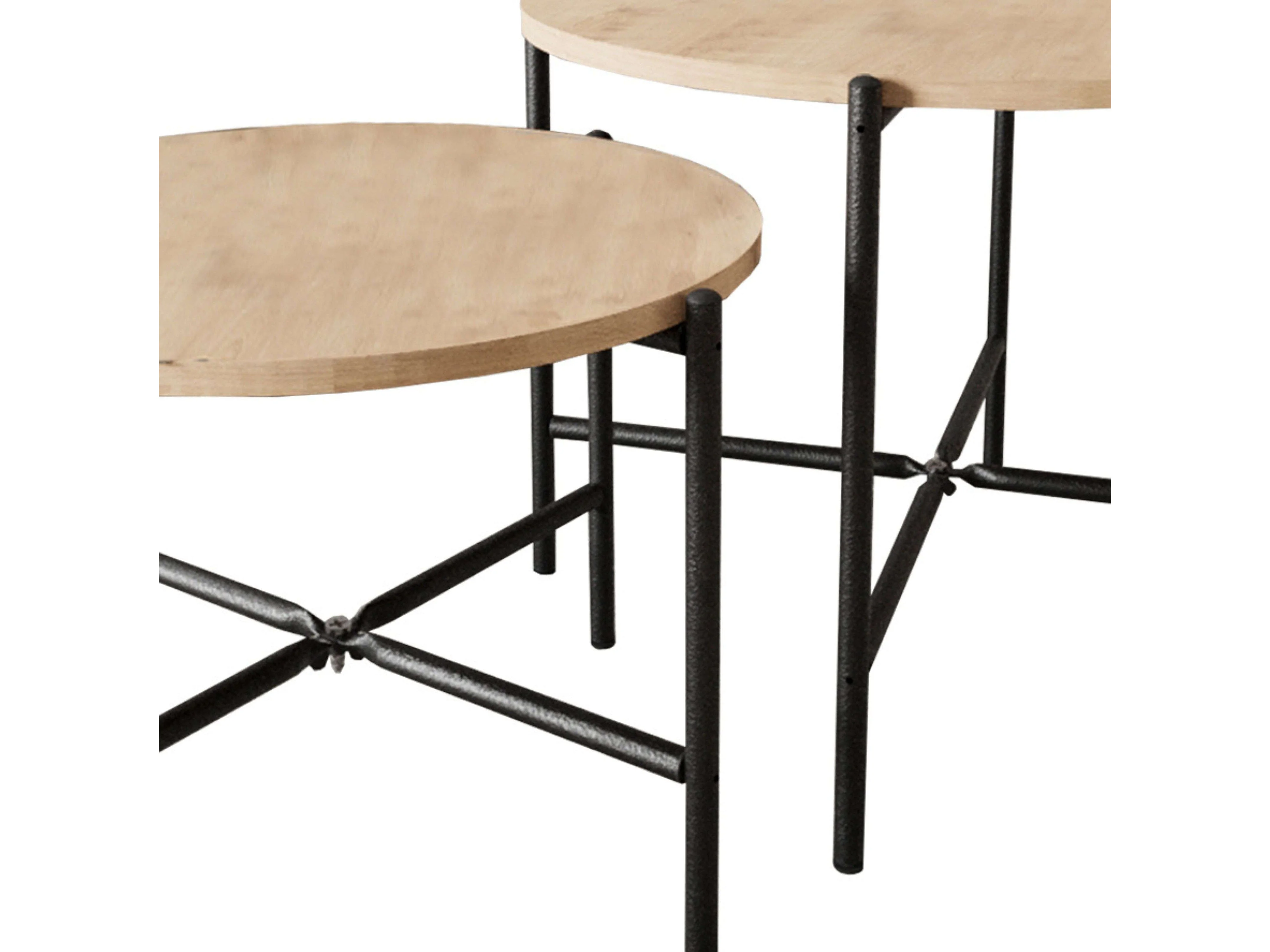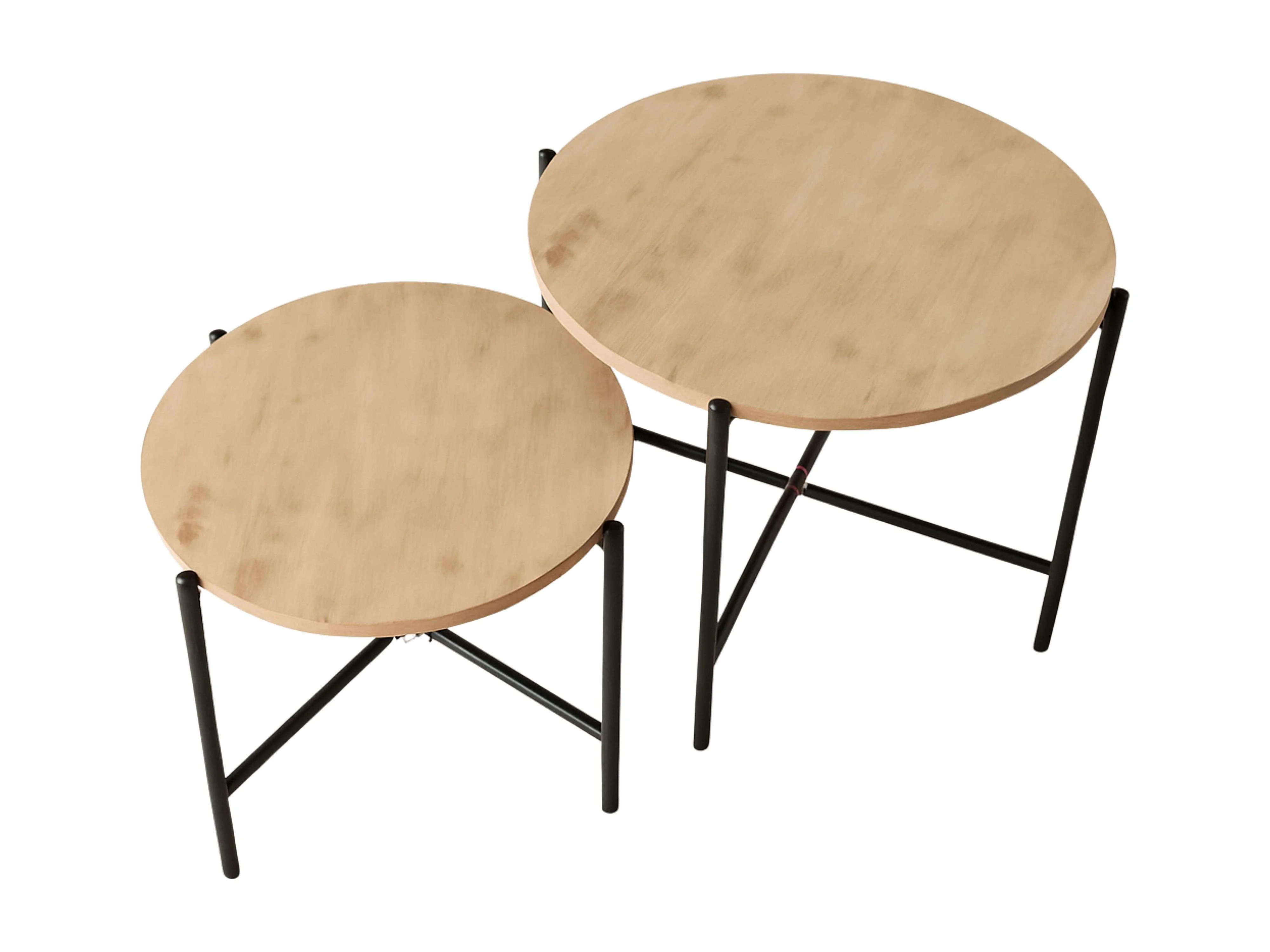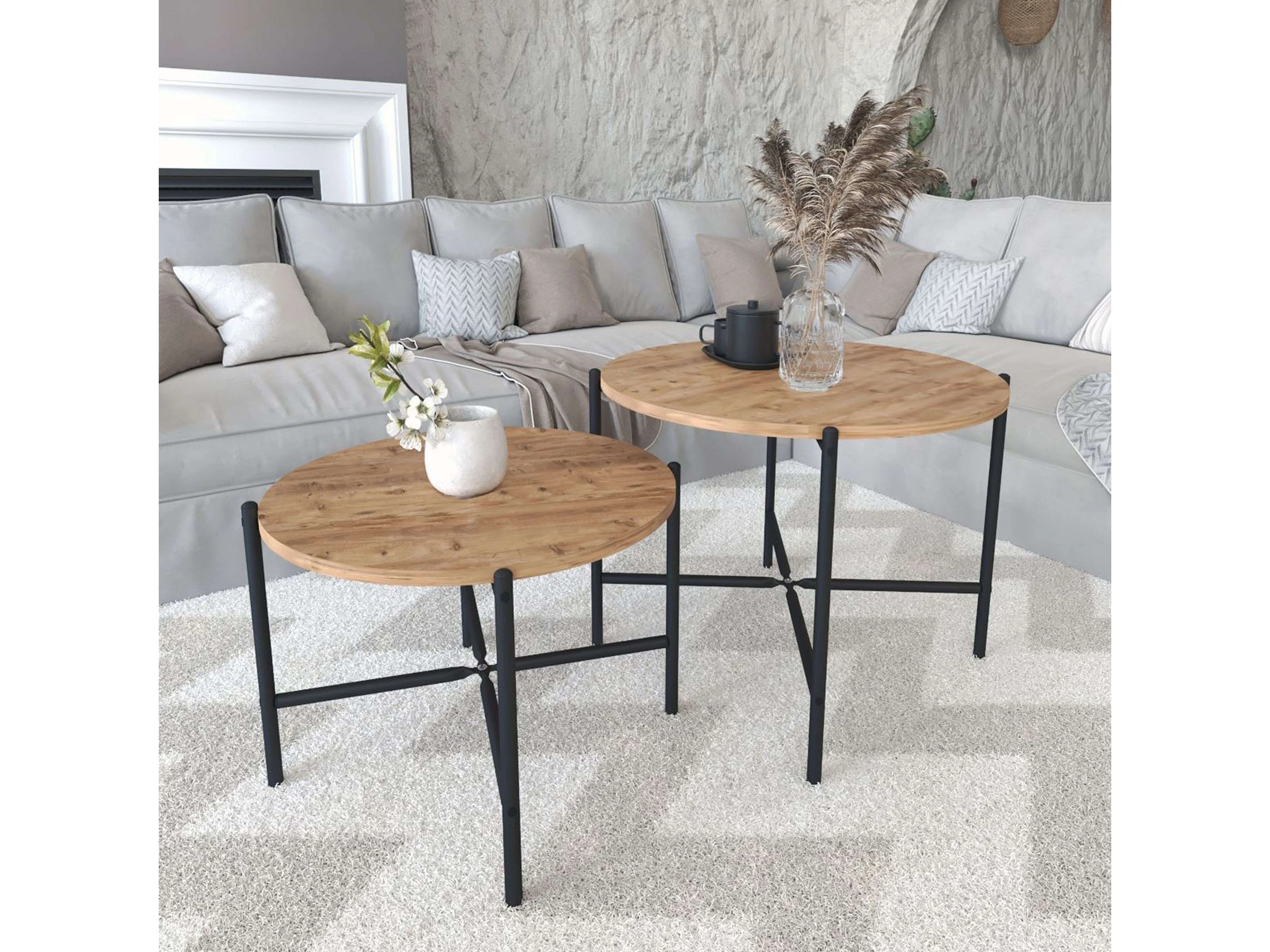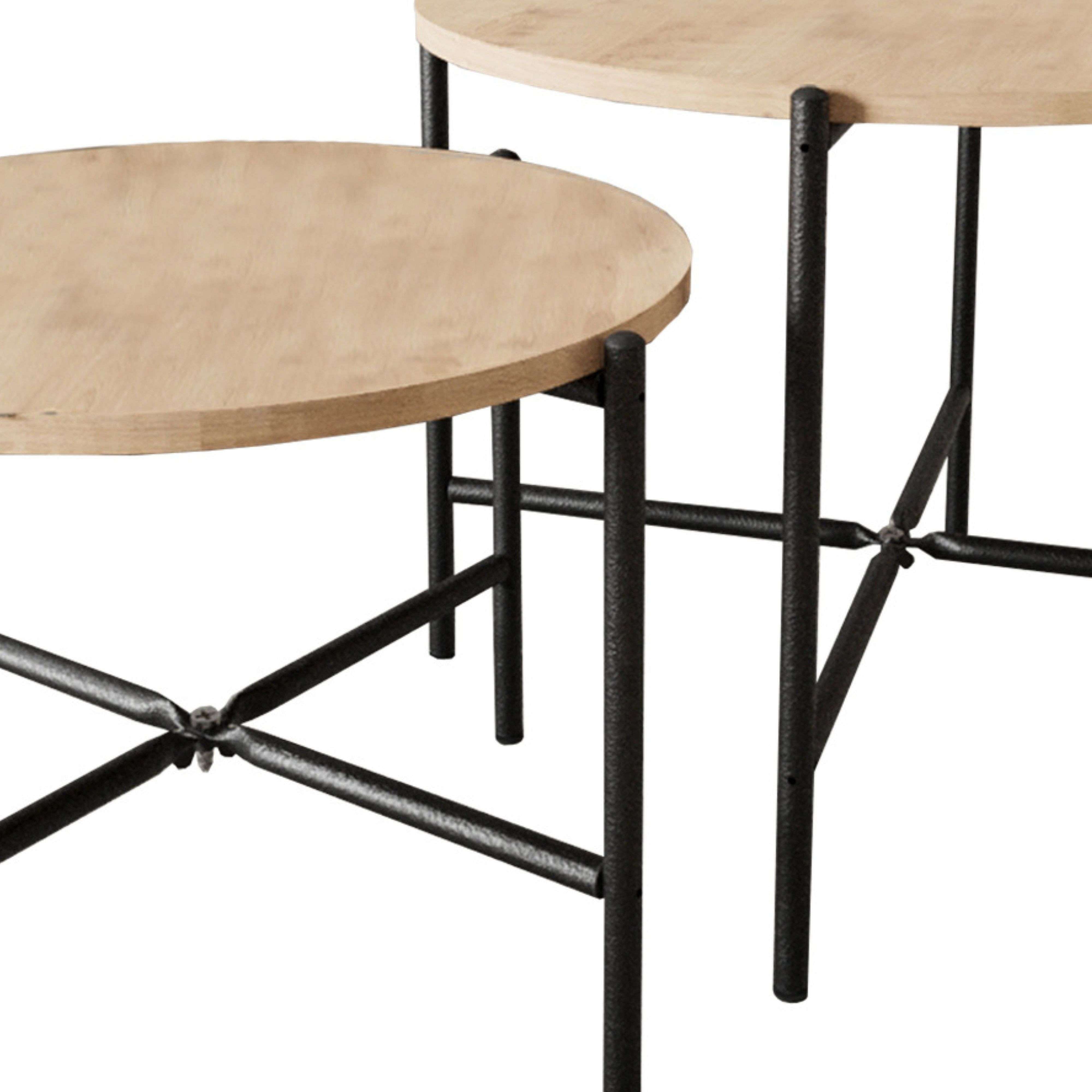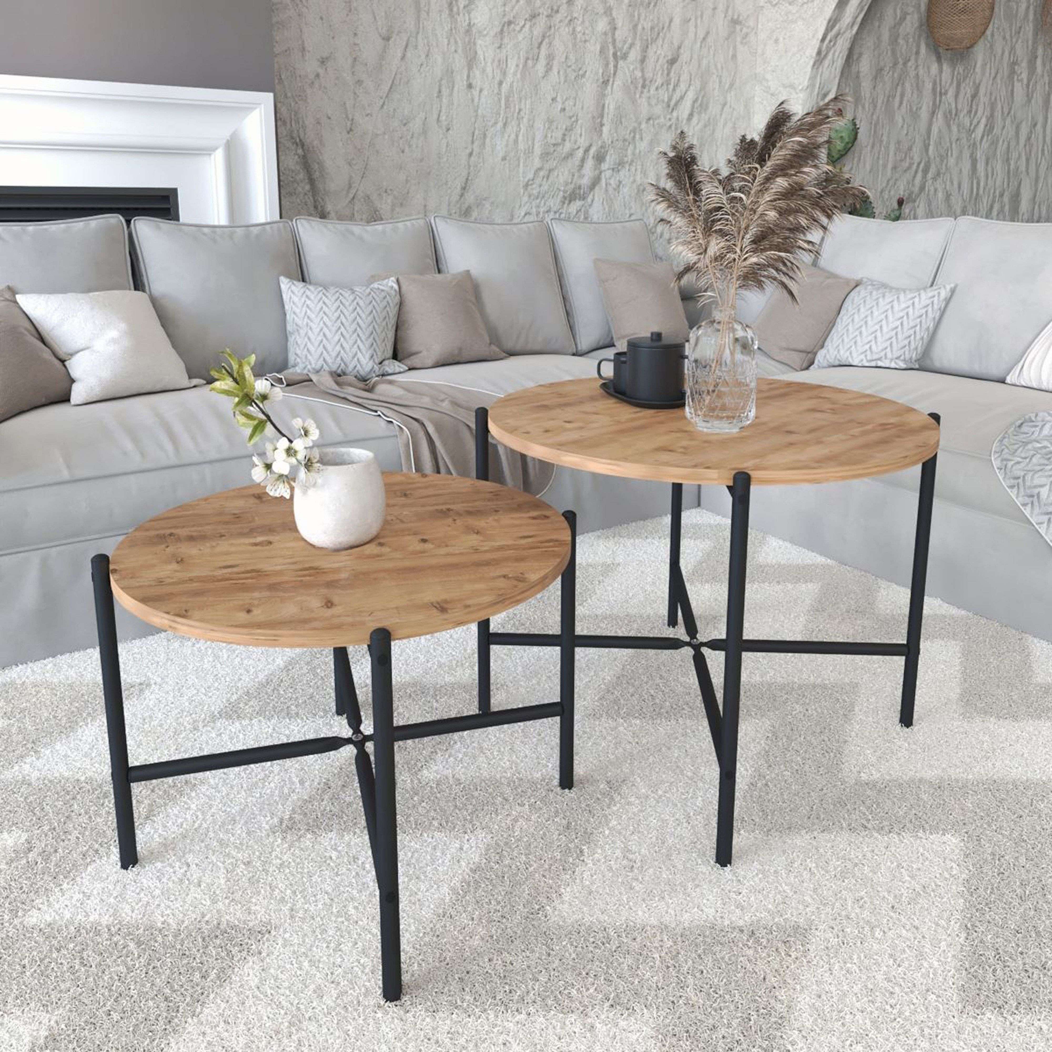 Pack 2 Mesas Centro Redondas Rus Estilo Industrial Roble Claro/Negro