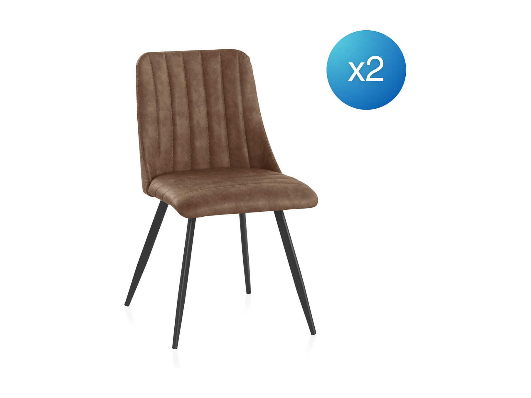 Pack 2 sillas tapizadas marrón patas metálicas negras