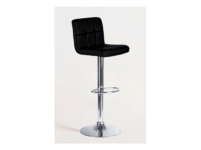 Taburete de bar con respaldo, regulable en altura, patas de metal, piel sintética, color negro (42x38x82-104 cm)