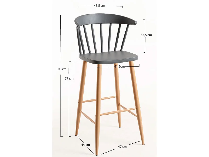 Set de 2 taburetes de cocina de diseño gris oscuro y nogal 65 cm NONIE