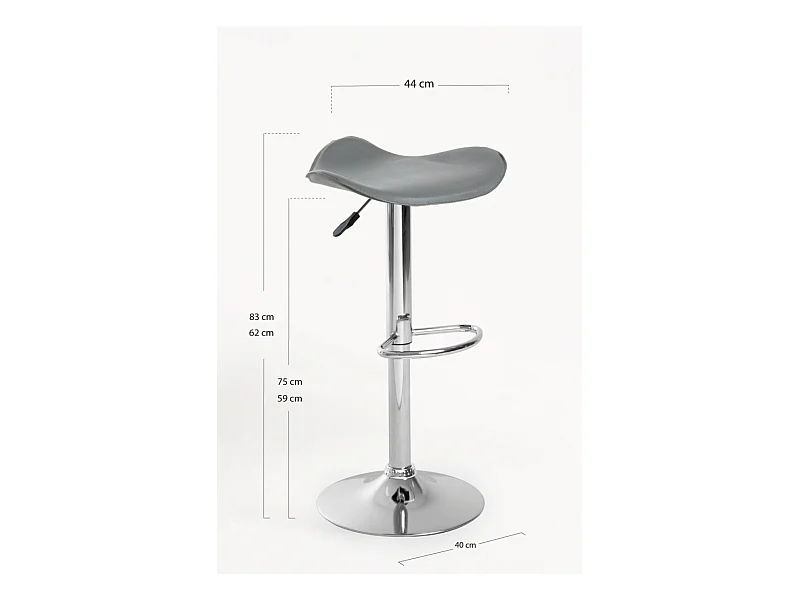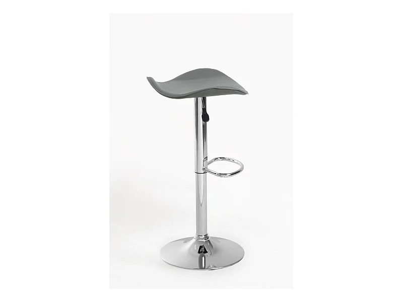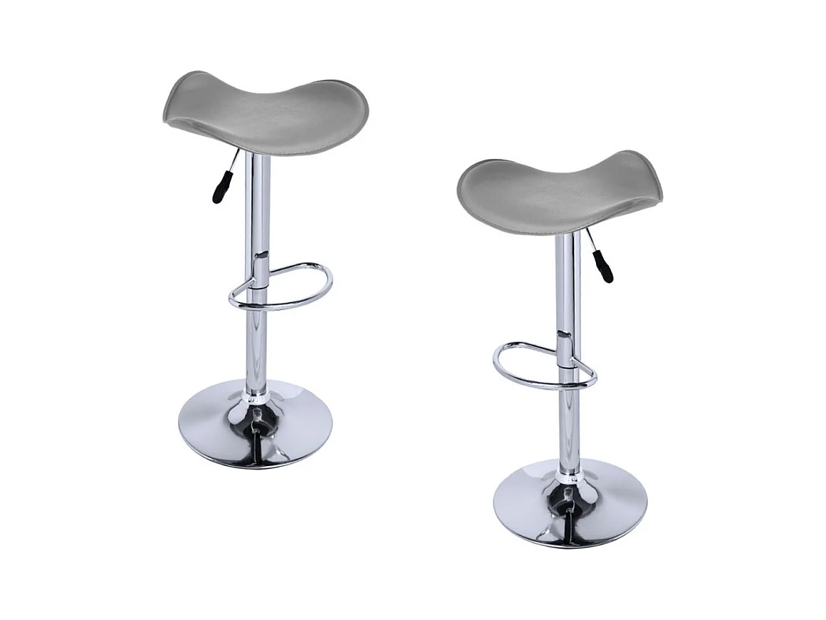 Lote de 2 taburetes de bar ajustables en altura 77-97 cm - Asiento de cuero sintético PU gris, pie de metal gris, diámetro 40 cm.