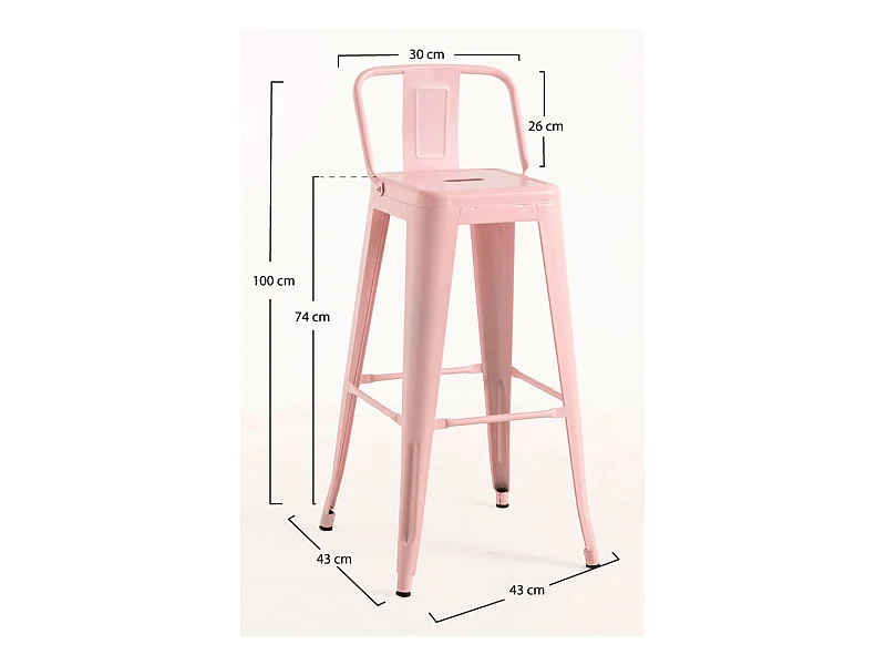 Taburete con respaldo de acero rojo brillante Kontoir 74 cm-Color Rosa claro