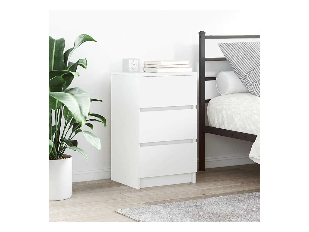 Pack 2 uds Mesilla de noche | Mesitas de noche con 3 cajones Blanco 39x35x65 cm