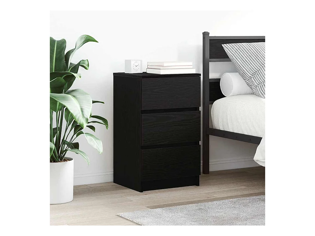 Pack 2 uds Mesilla de noche | Mesitas de noche con 3 cajones Negro 39x35x65 cm