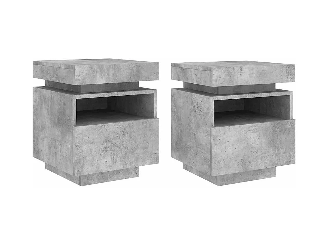 Pack 2 uds Mesitas de noche | Mesilla de noche con luces LED gris hormigón 40x39x48,5cm