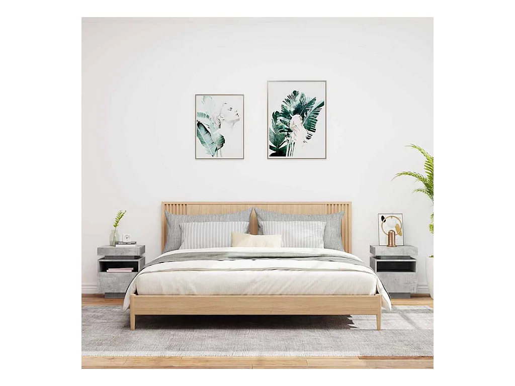 Mesita de noche | Mesilla de noche luces LED 2 uds madera ingeniería gris hormigón