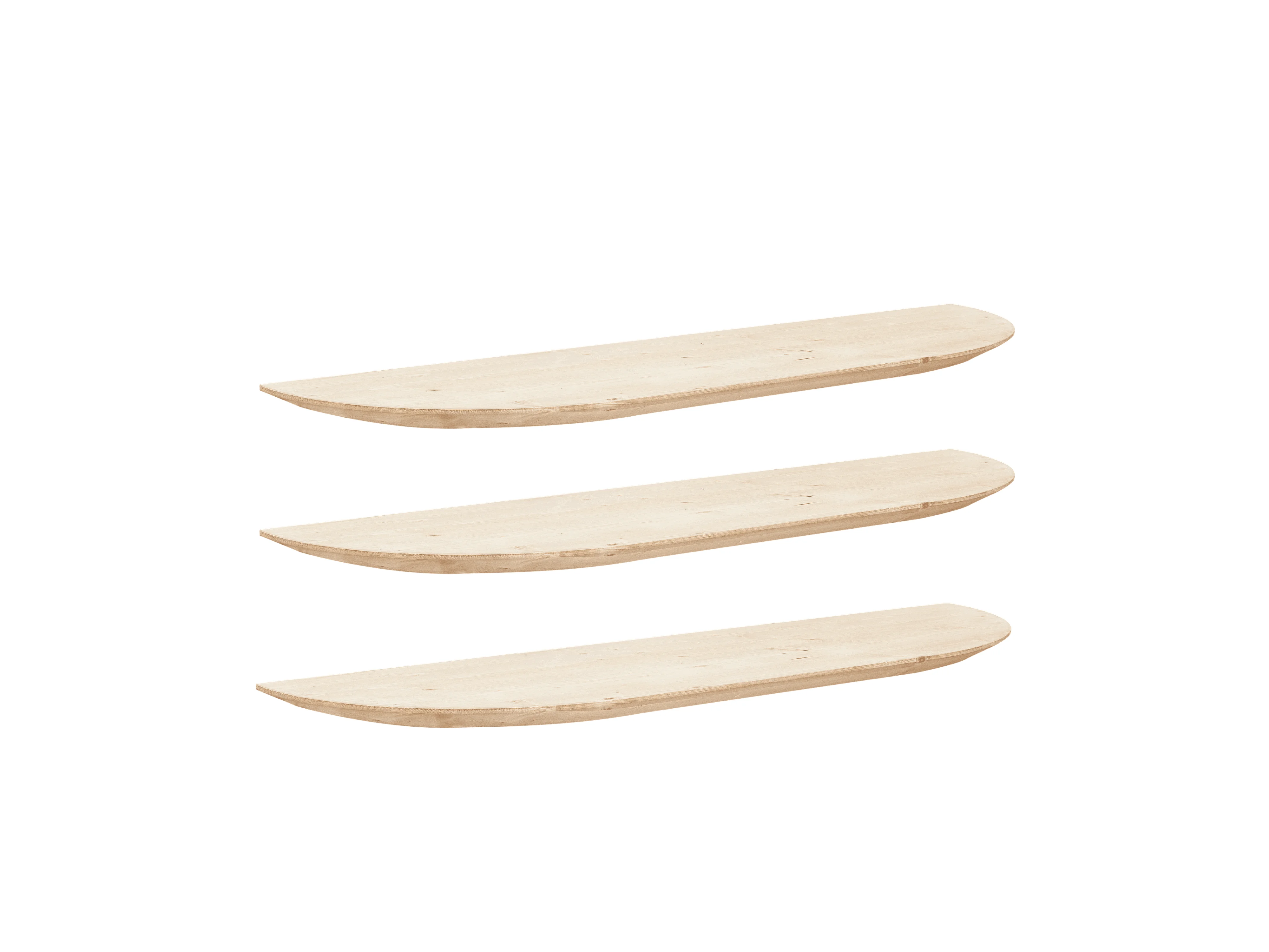 Pack 3 estanterías redondeadas de madera maciza flotantes tono natural 180x3,2x19,65cm - BLOOM - DECOWOOD