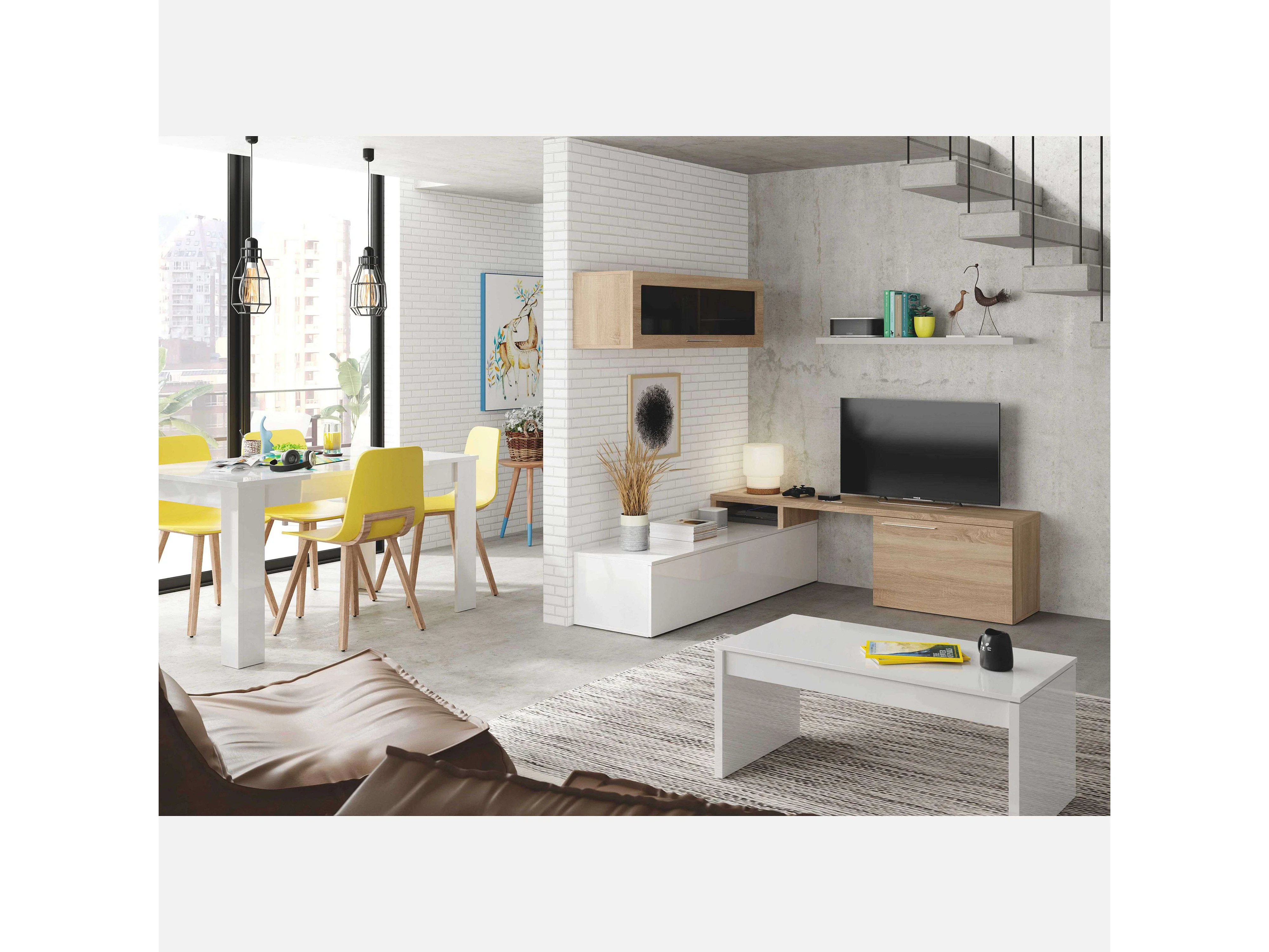 Pack Muebles Salón Moderno Blanco Mate y Roble Canadian