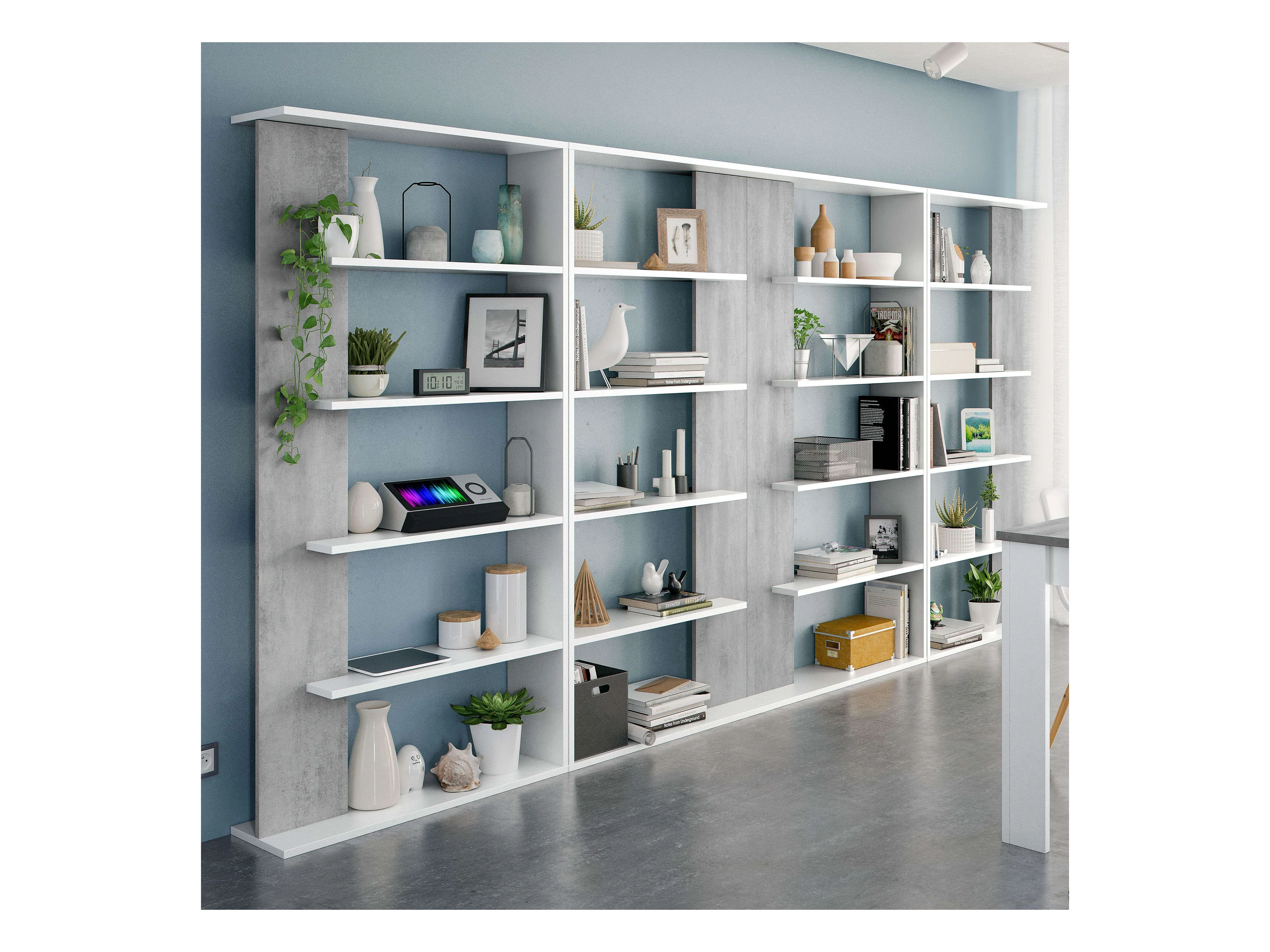 Pack 4 Estanterías Modernas Salón Comedor Color Cemento y Blanco