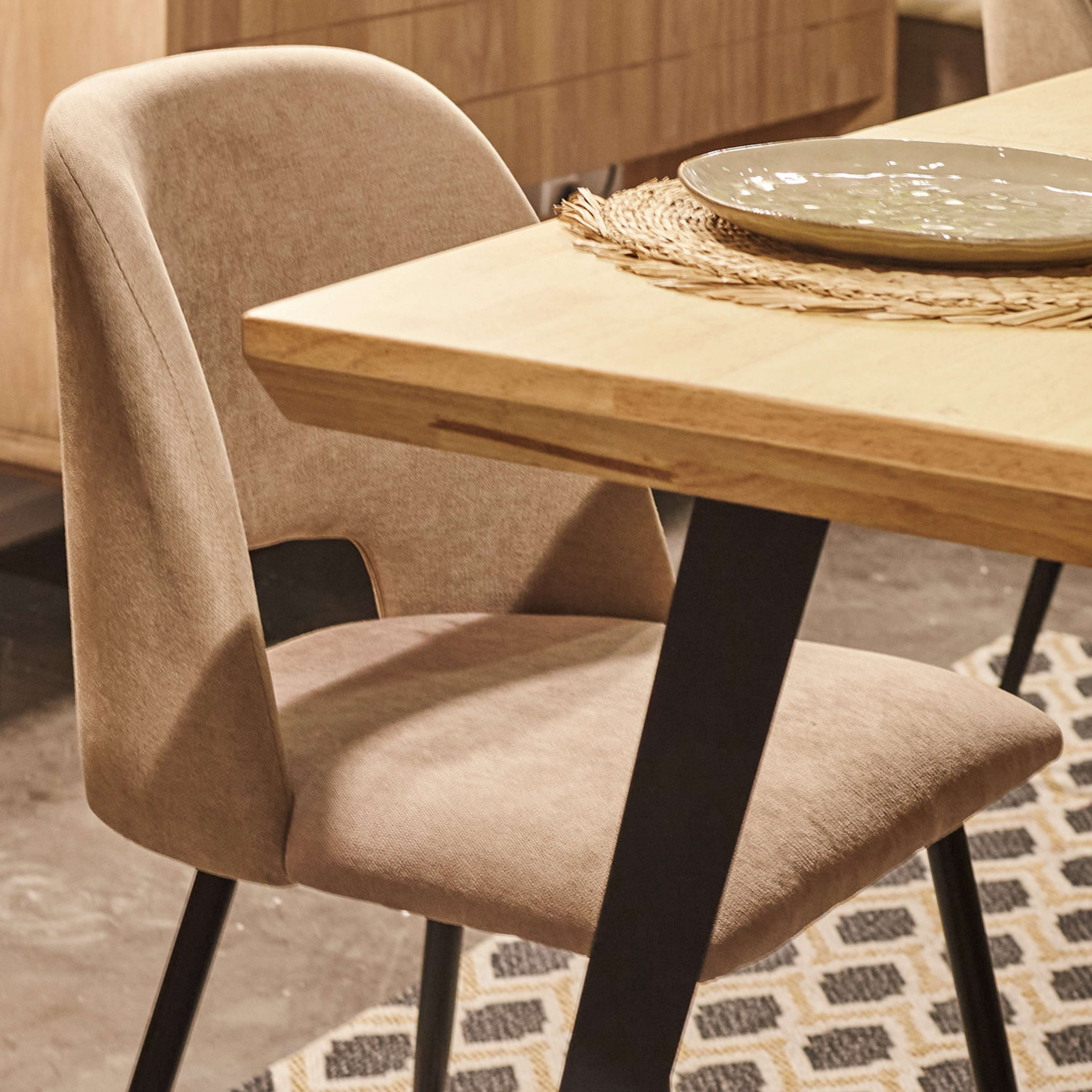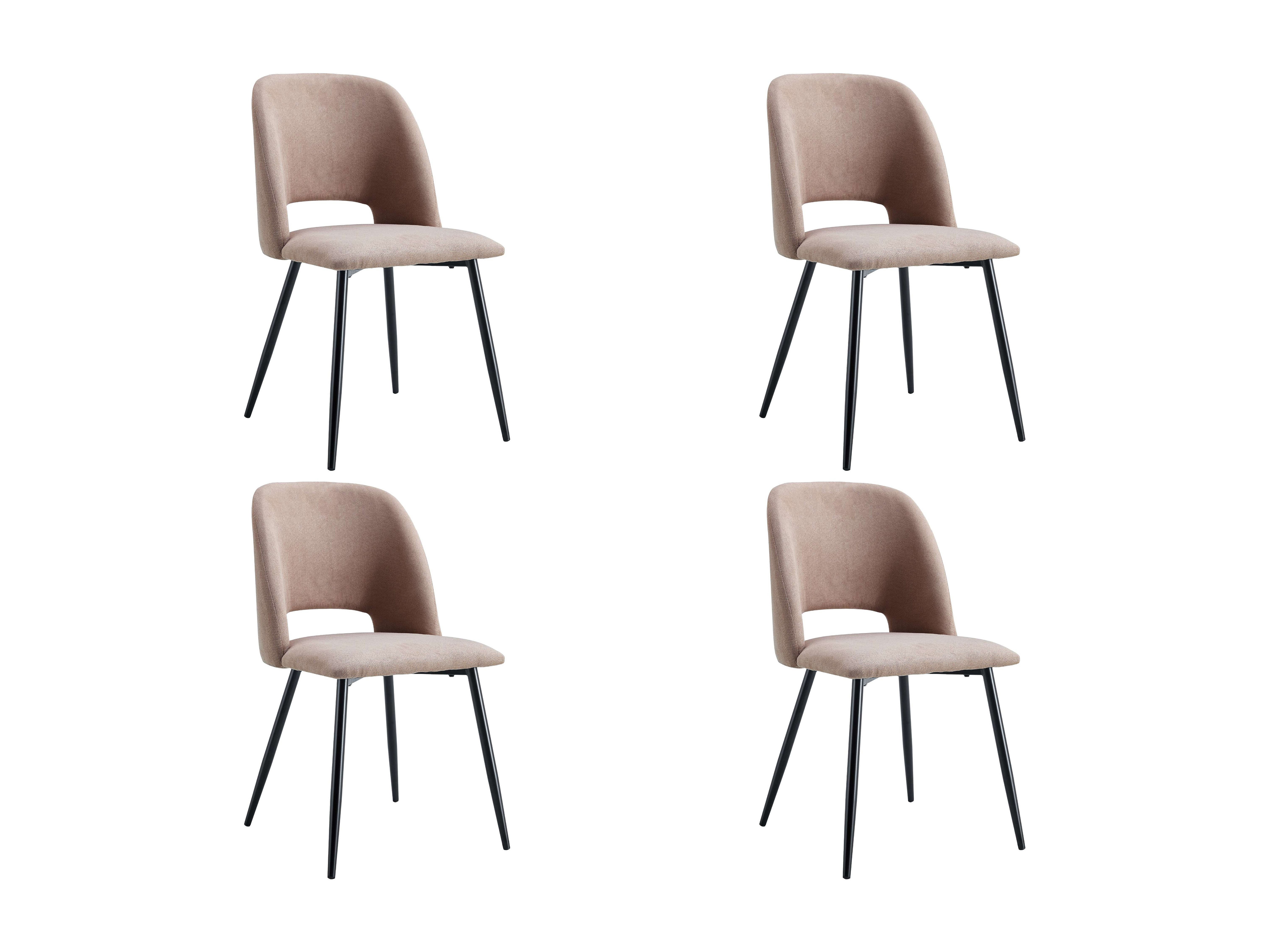 Pack 4 sillas comedor Mos mod. moderno beige tapiz patas metal negro 58x86x50 cm