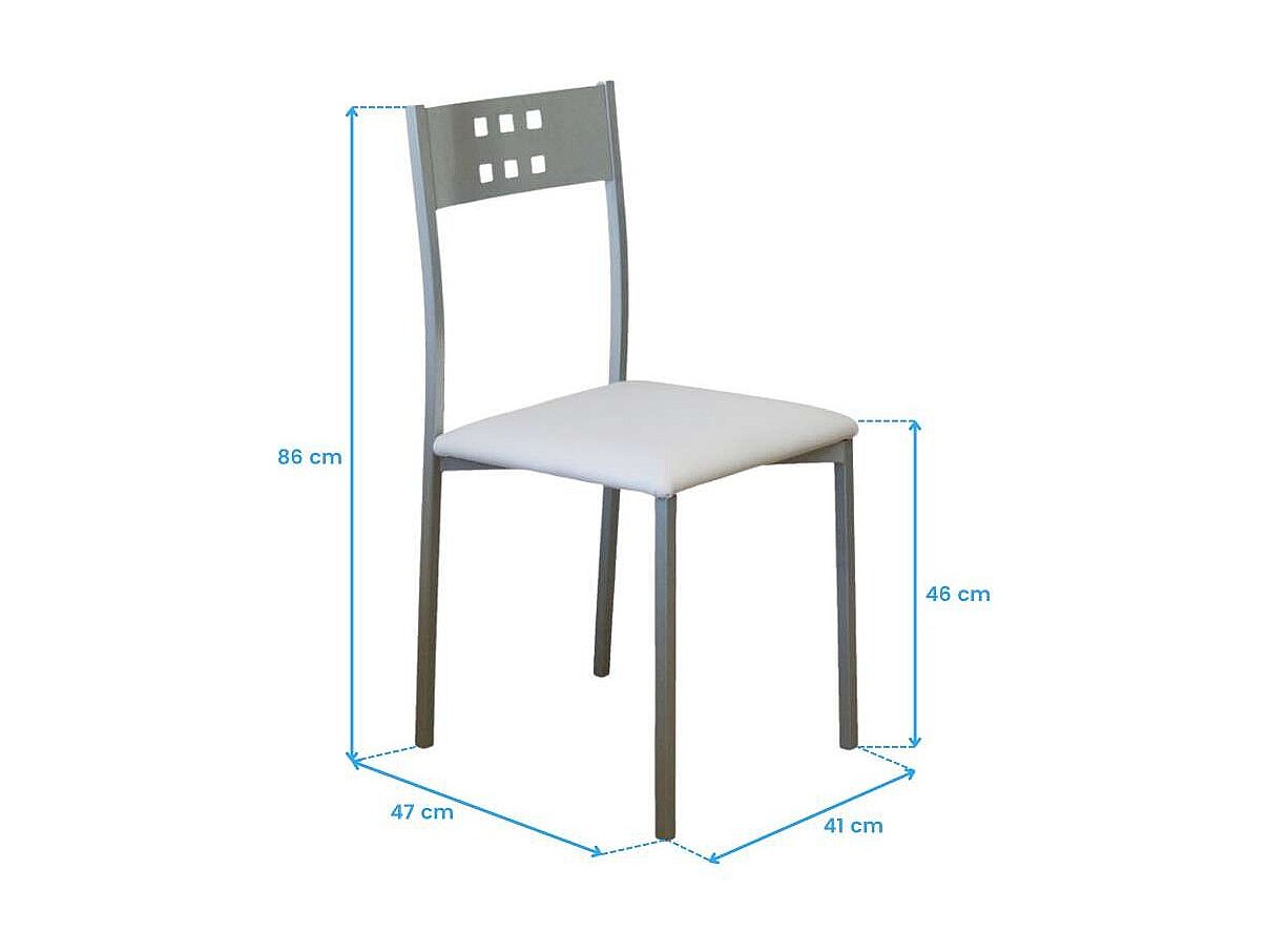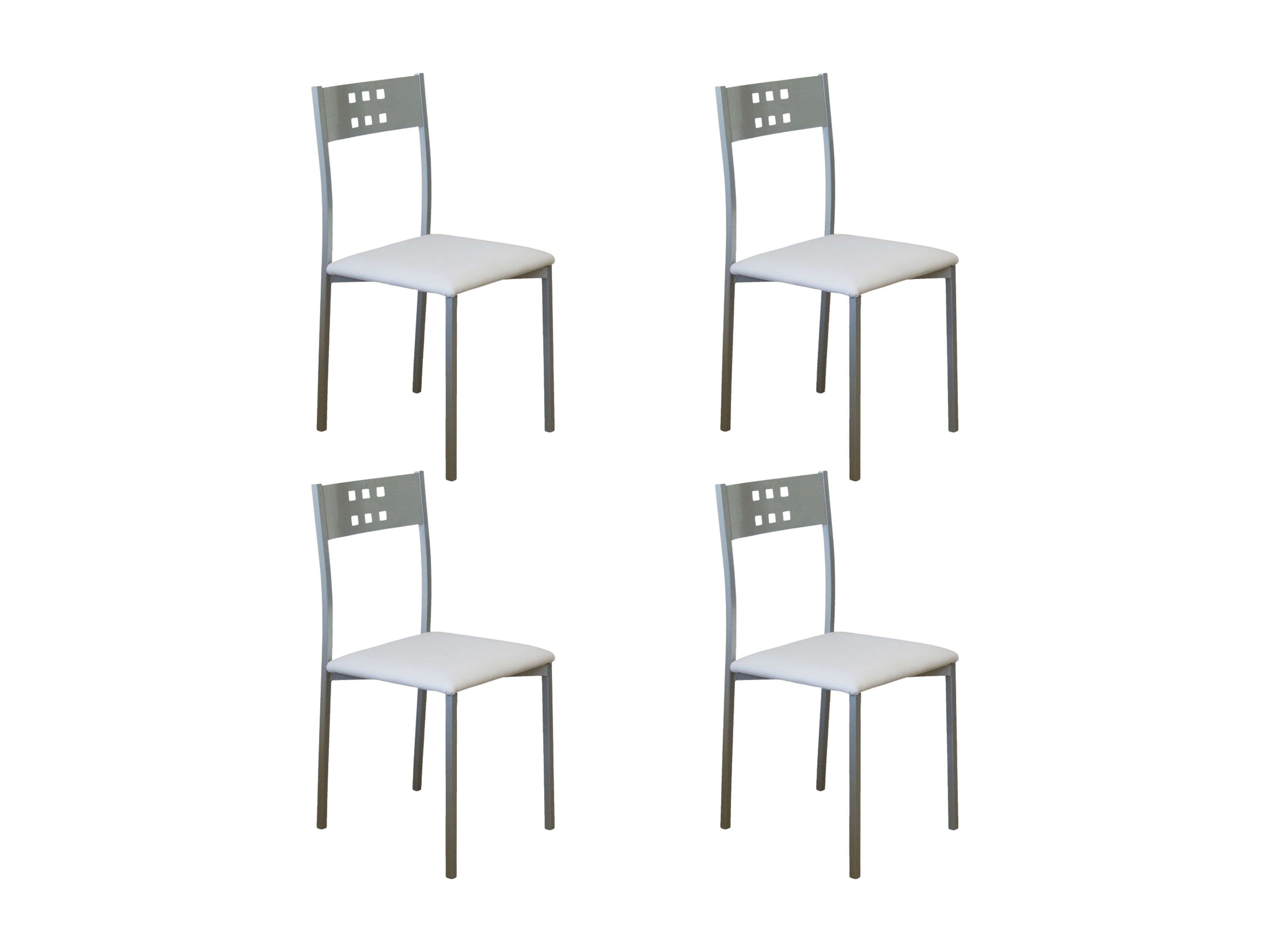 Pack 4 sillas para comedor acabado cromo tapizado polipiel blanco, 86 cm(alto)39 cm(ancho)