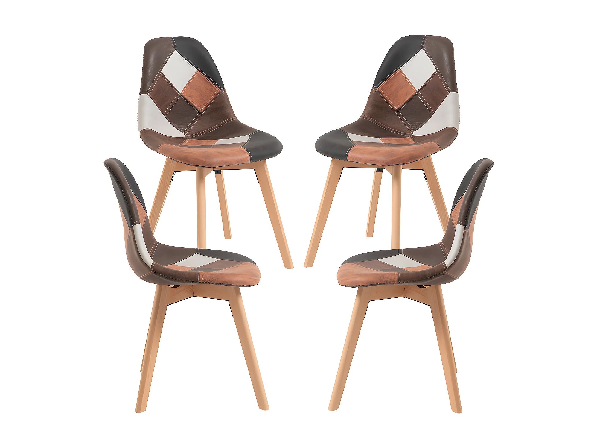 Packs Sillas Comedor - Pack 4 Sillas Kelen Patchwork Polipiel - Marrón