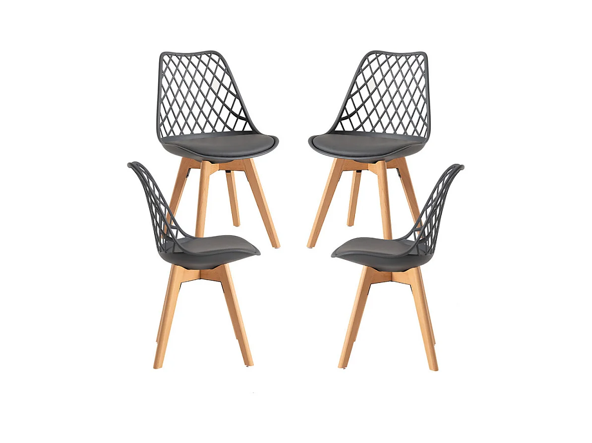 Conjunto de 4 Sillas de diseño escandinavo de plástico con cojines de cuero artificial - Gris