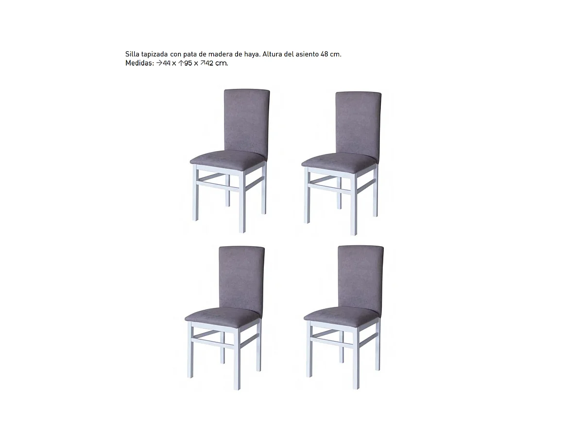 Pack 4 sillas Nivar tapizadas en tela gris. 95cm (alto), 44cm(ancho), 42cm(fondo)