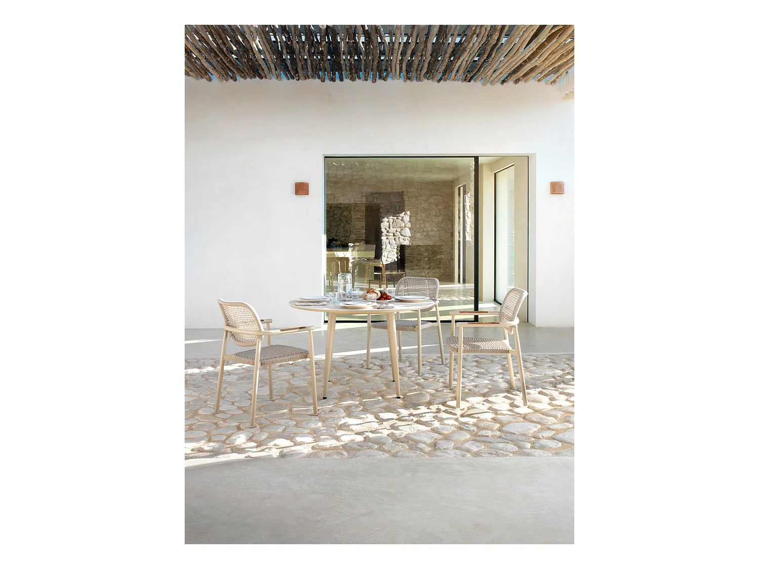 Lote de 4 sillones de aluminio color arena con cuerda trenzada