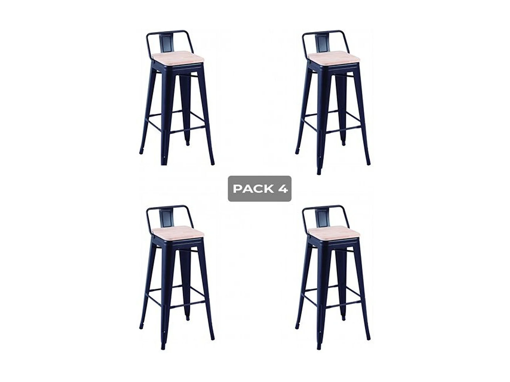 Pack 4 taburetes altos Tolix negro asiento roble Nordish 93x30x33 cm Adec
