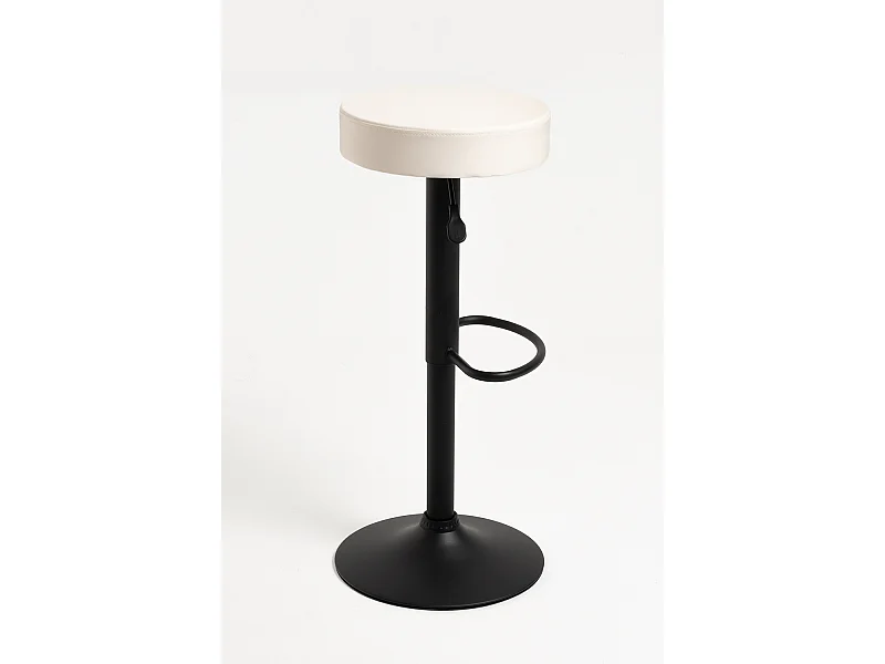 Lote de 2 taburetes de bar ajustables en altura 77-97 cm - Asiento de cuero sintético PU blanco, pie de metal gris, diámetro 40 cm.
