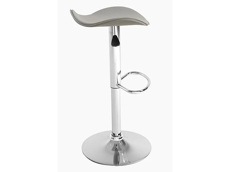 Lote de 2 taburetes de bar ajustables en altura 77-97 cm - Asiento de cuero sintético PU gris, pie de metal gris, diámetro 40 cm.