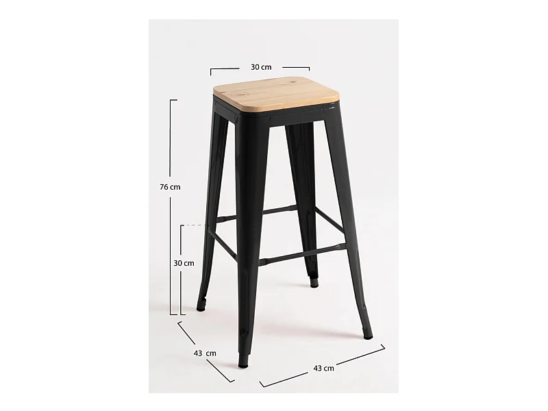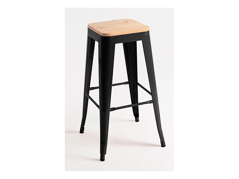 Lote de 4 Taburetes Torix Altos Madera Natural - Negro