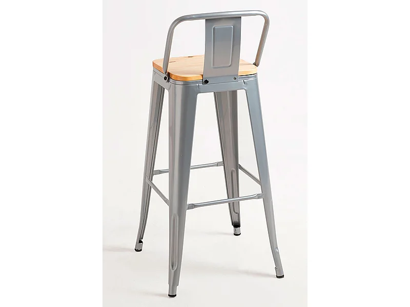 Lote de 2 Taburetes Torix Respaldo Madera Natural - Gris metalizado