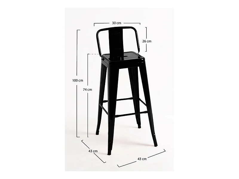 Pack de 4 taburetes Tolix AD con respaldo acabado negro. 93 cm(alto)42,5 cm(ancho)43,5 cm(