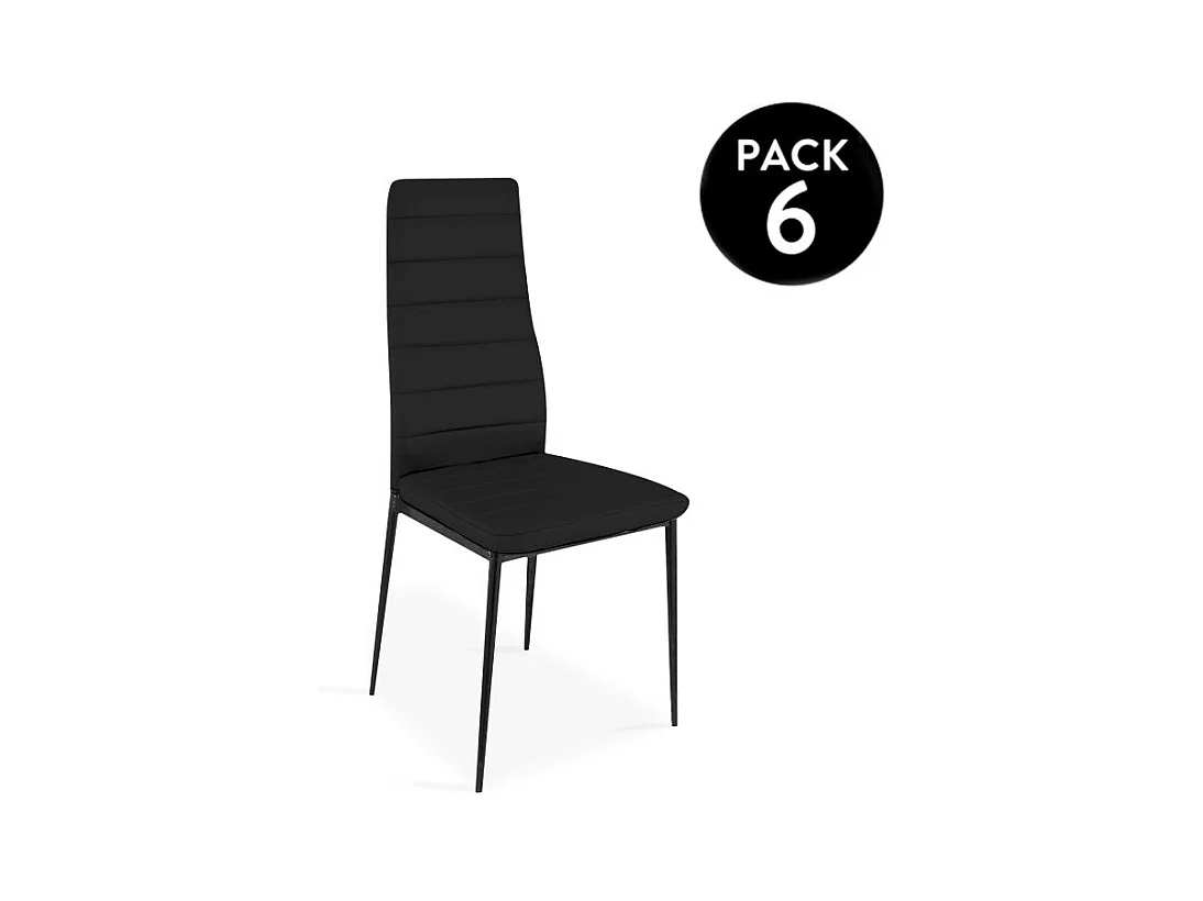 Pack 6 sillas de comedor símil piel Emi Negro
