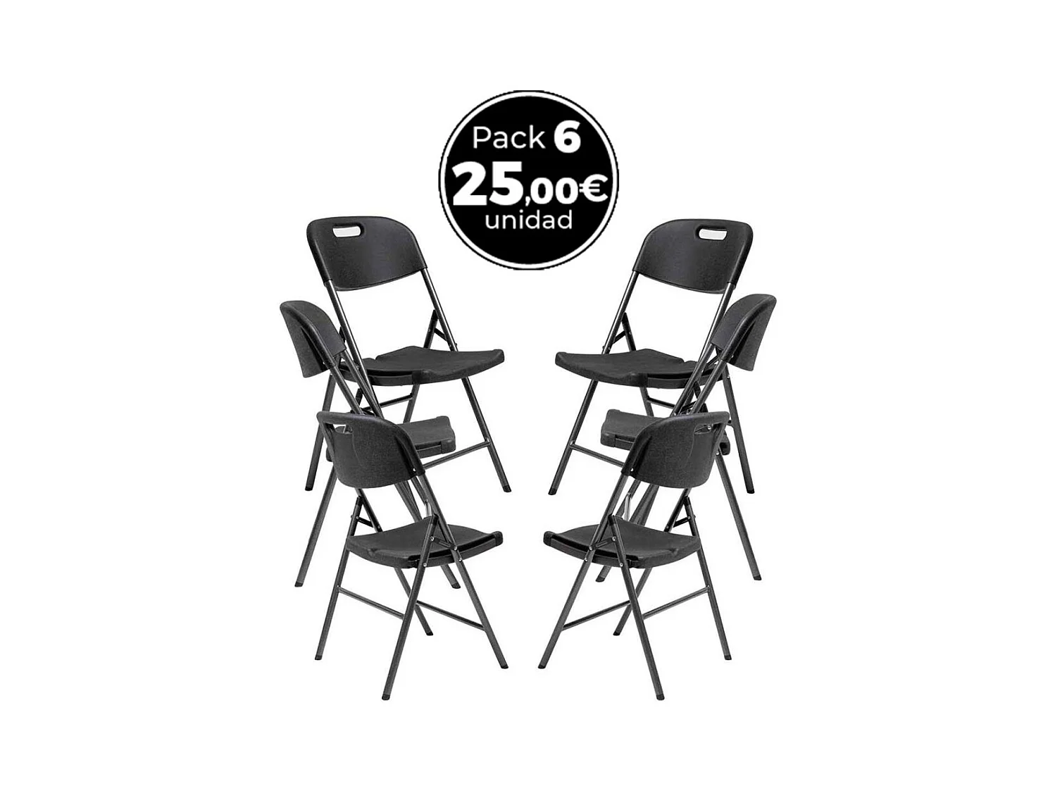 Packs Sillas Plegables - Pack 6 Sillas Resin - Negro