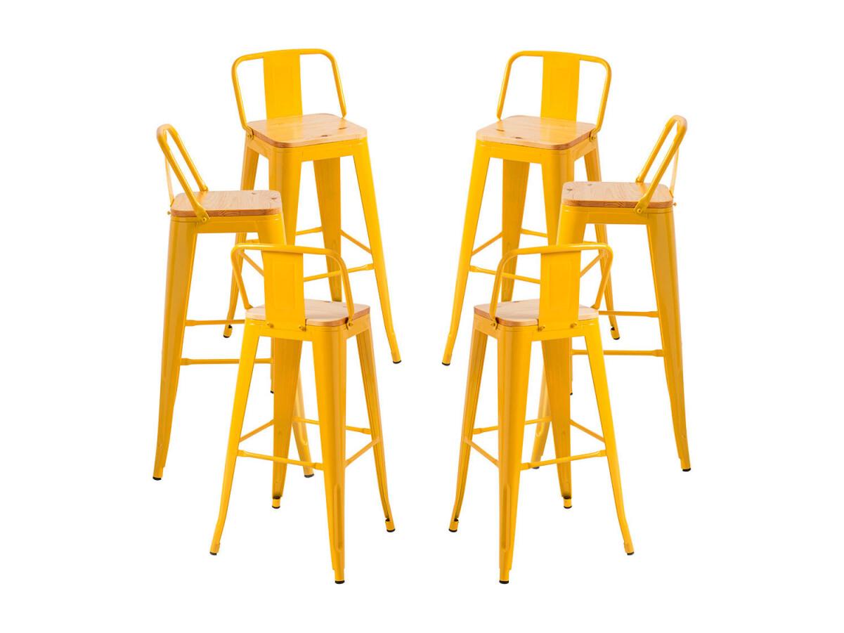 Lote de 6 Taburetes Torix Respaldo Madera Natural - Amarillo