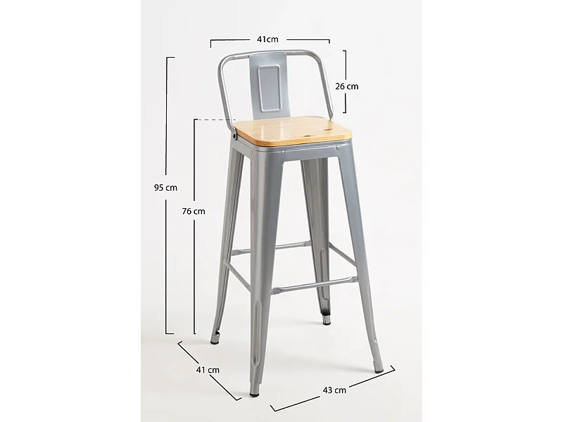 Lote de 2 Taburetes Torix Respaldo Madera Natural - Gris metalizado