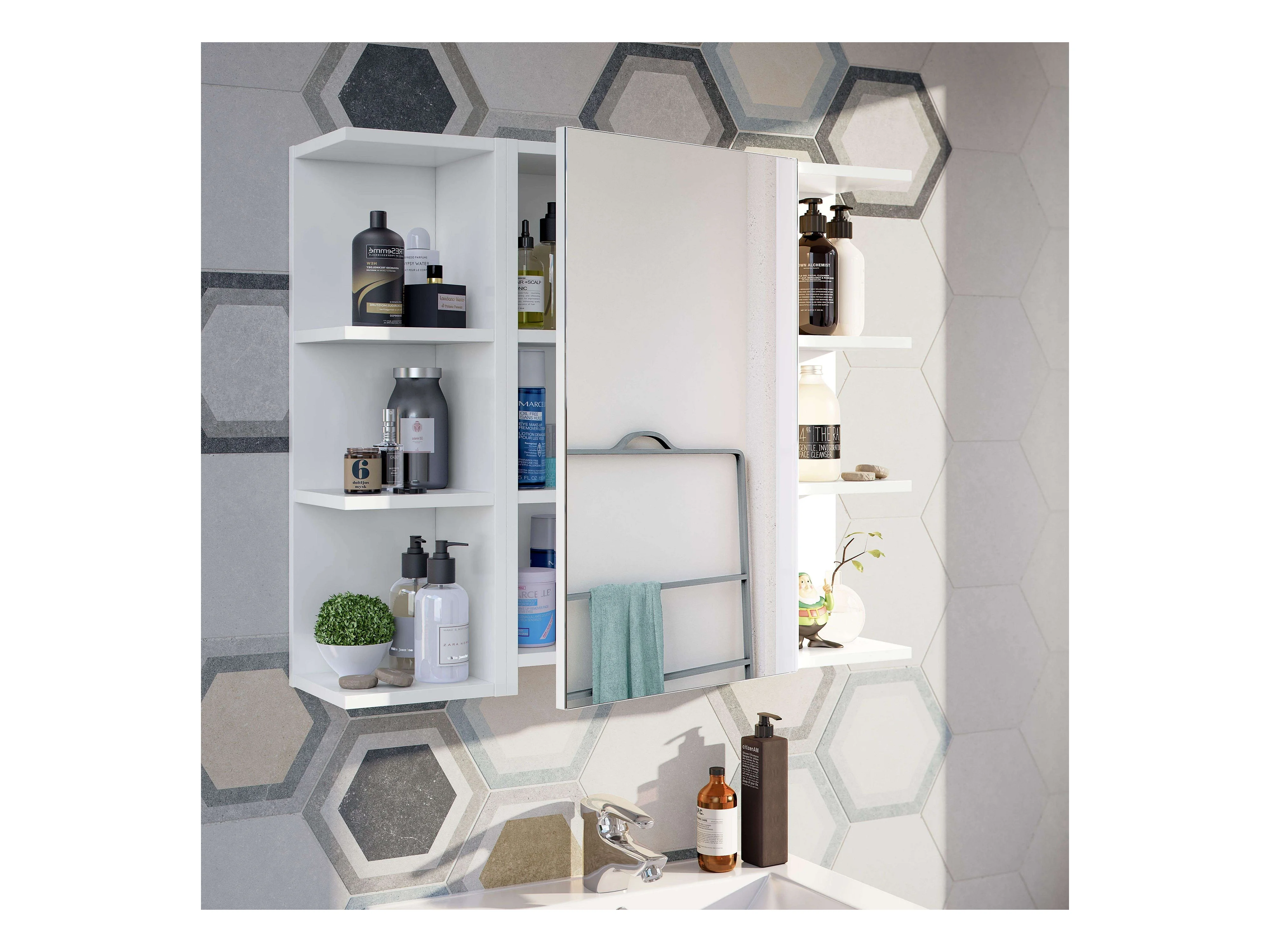 Pack armario baño espejo + 3 estantes blanco brillo 60x65x21 cm