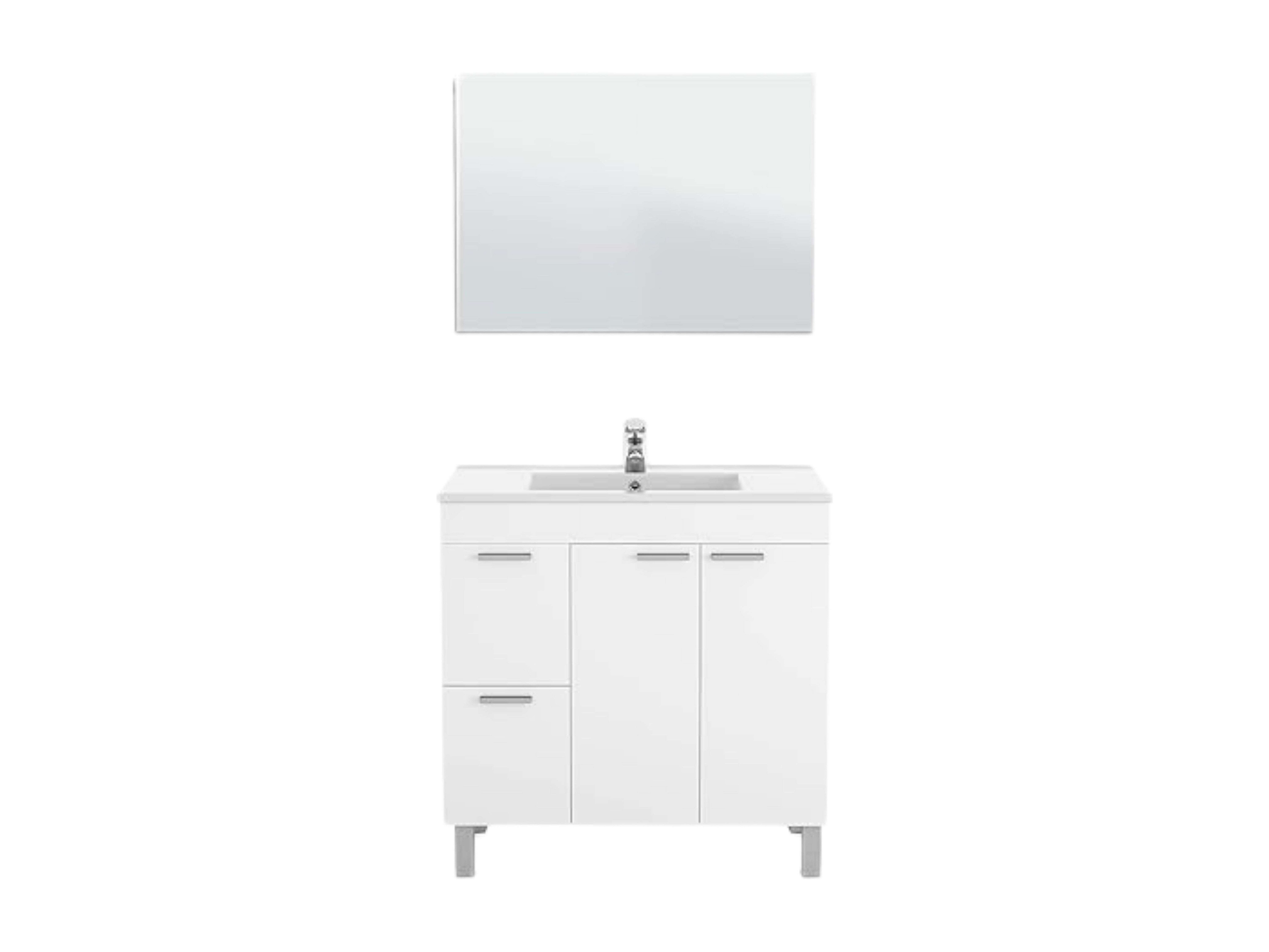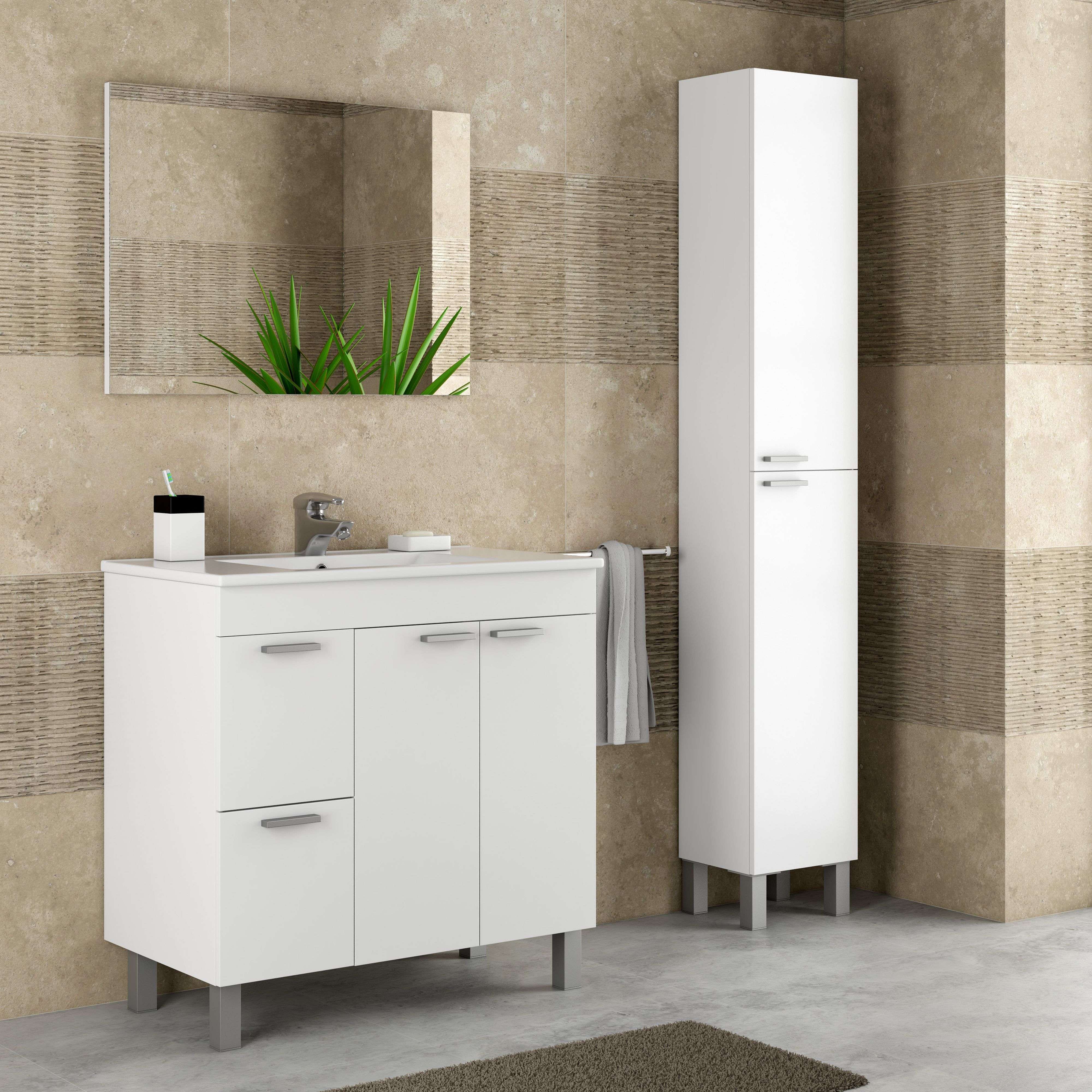 Pack baño Blanco brillo: mueble + espejo + lavabo cerámico + col. auxiliar
