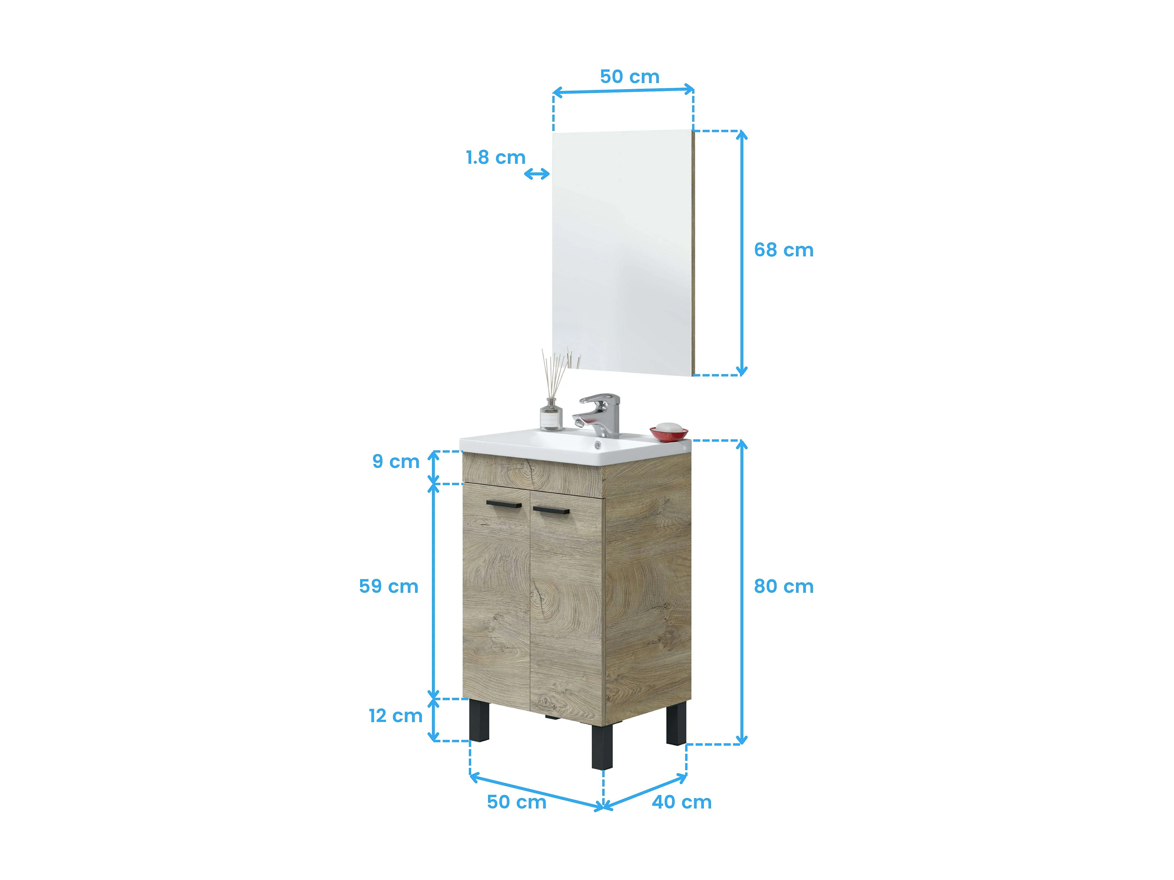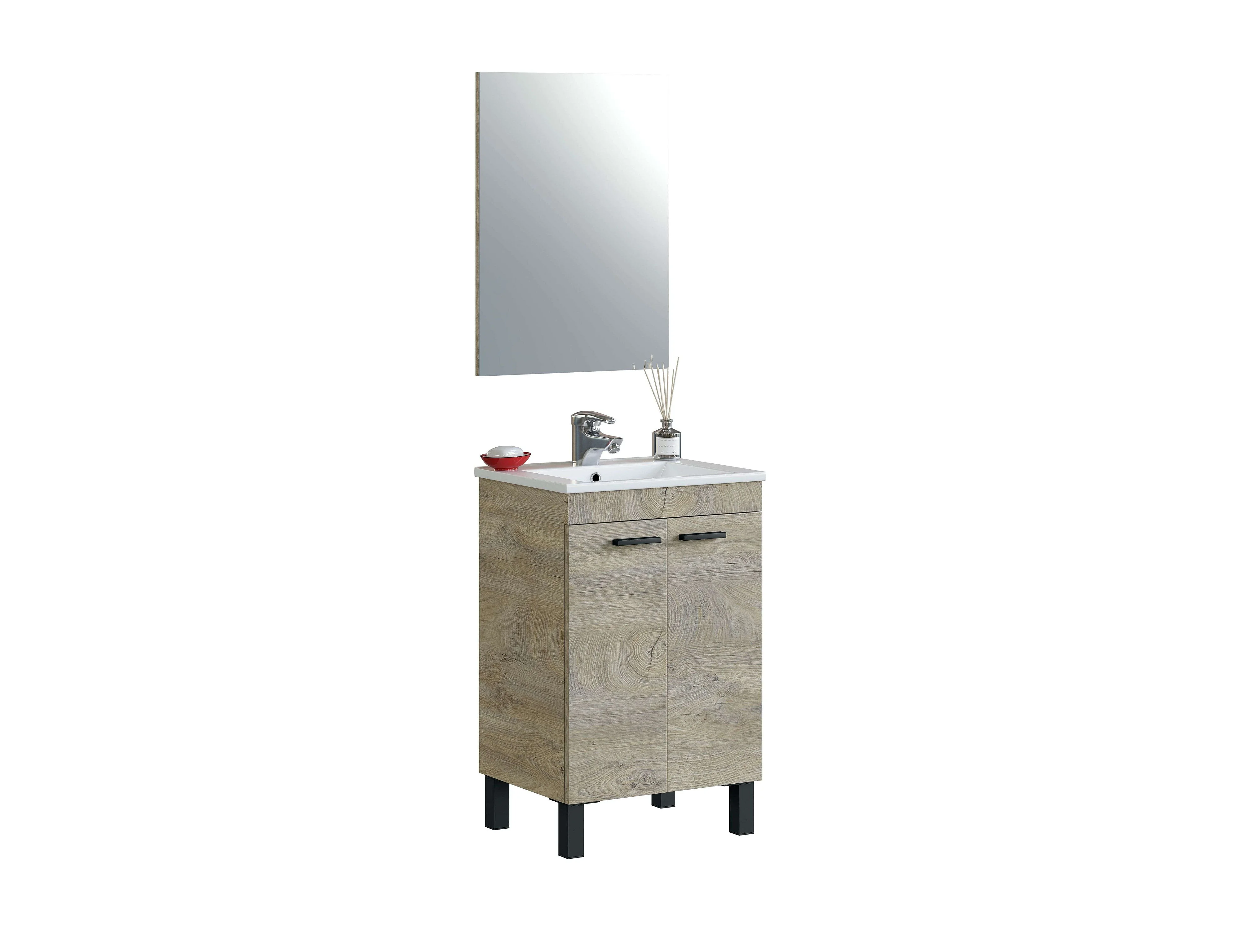 Pack Baño Completo Roble Alaska (mueble+Espejo+Columna) Lavabo Incluido