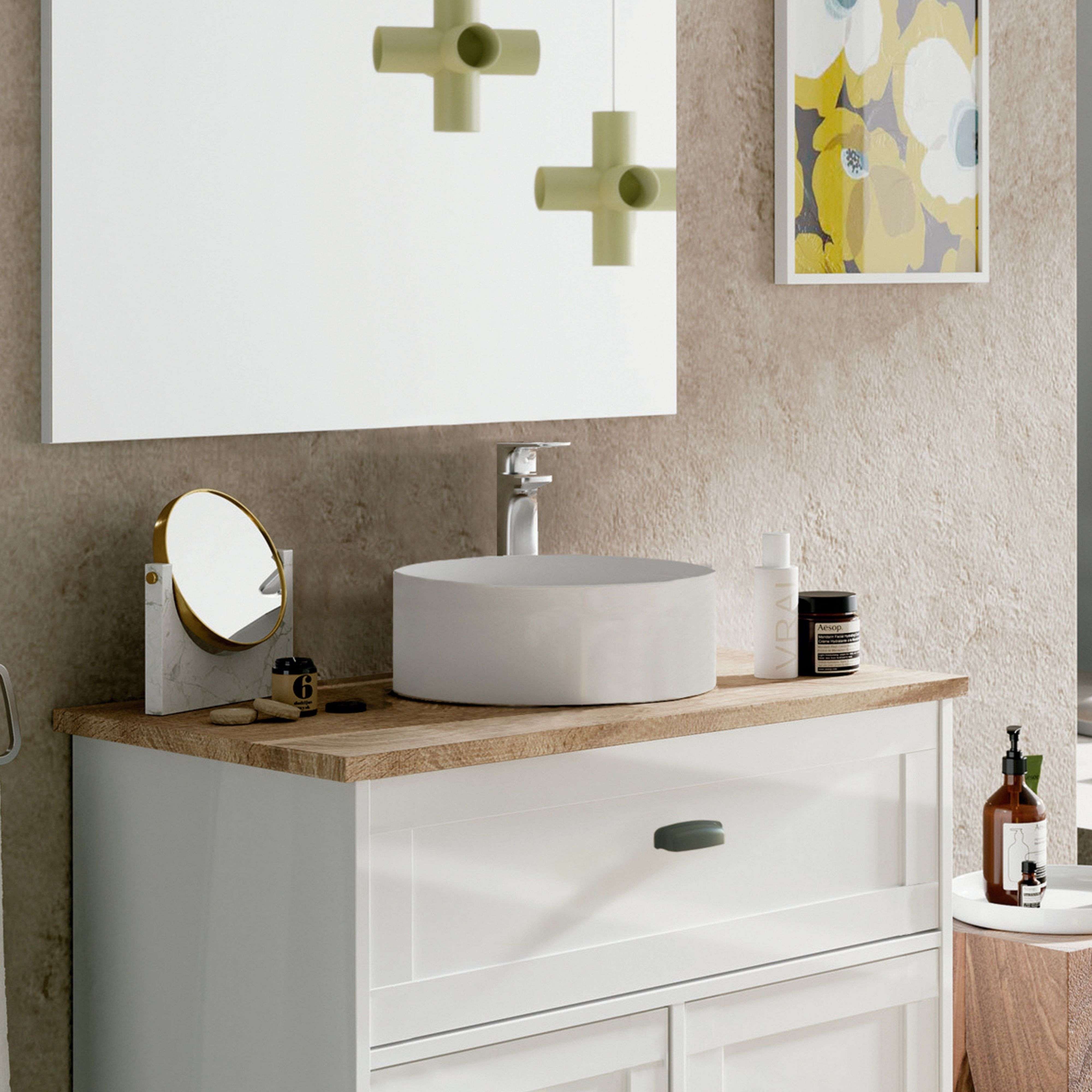 Conjunto Baño Toscana Blanco Soft y Roble Cambrian (Mueble+lavamanos+columna)