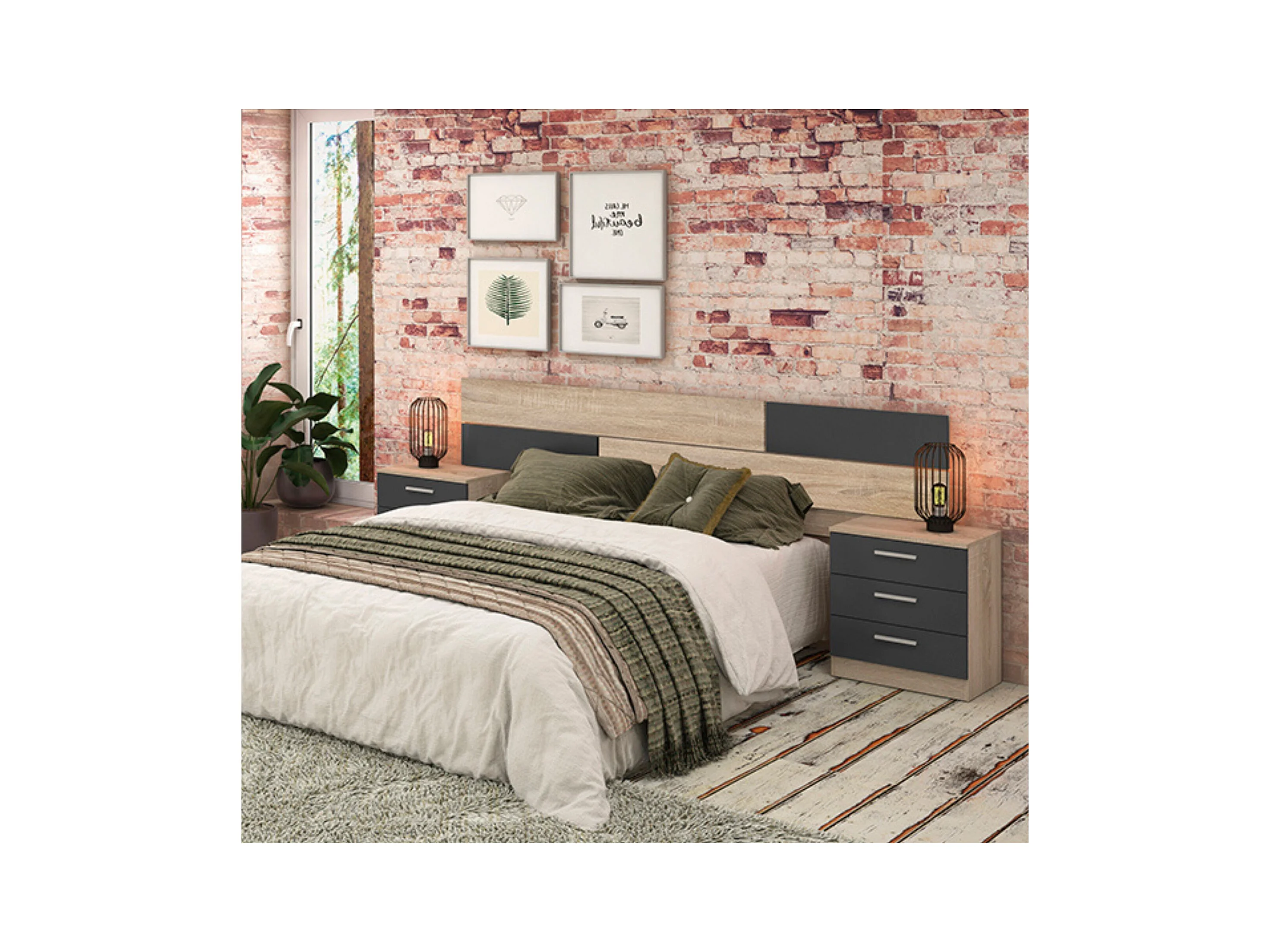 Cabecero y puente de cama estilo estilo industrial