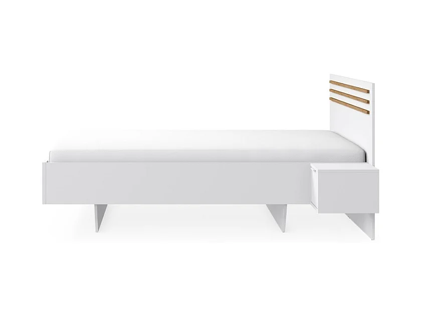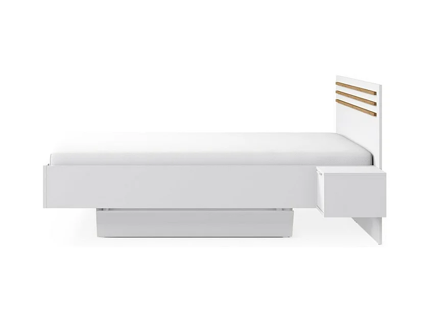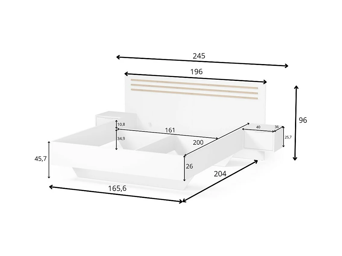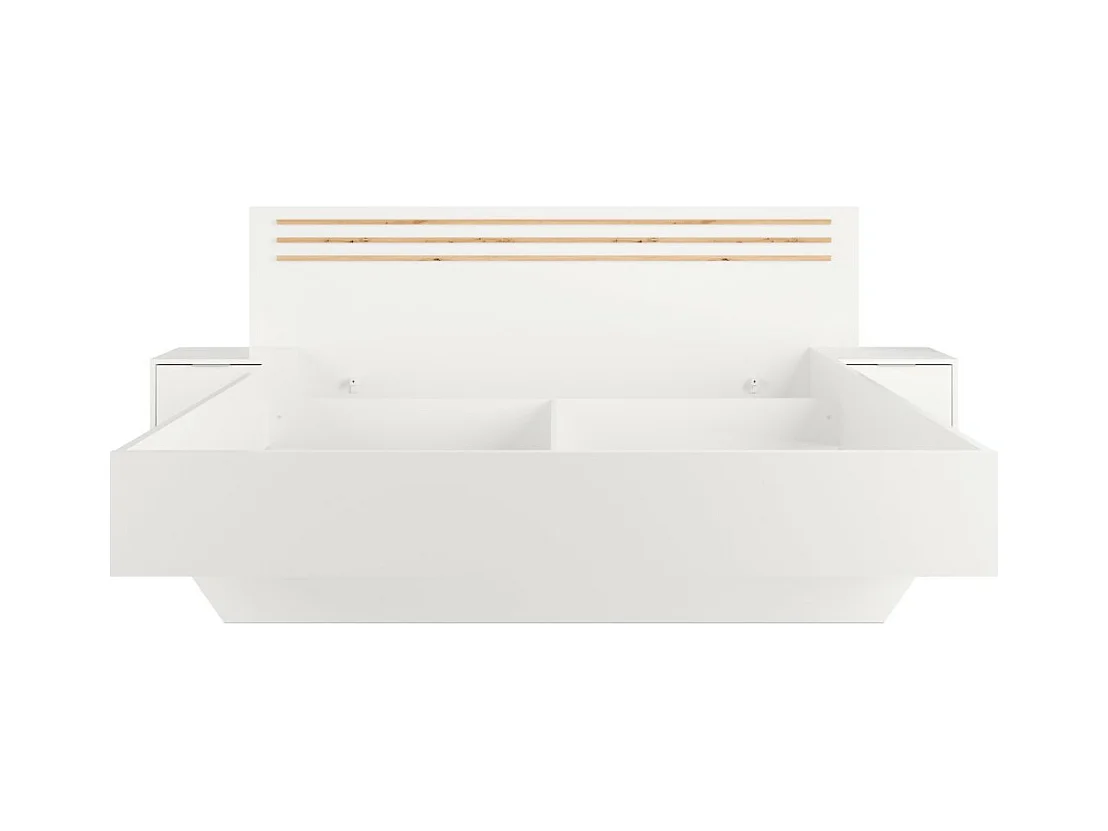 Pack cama FLORENCE – 160x200 cm – Con somier + 2 cajones – Mesitas integradas – Blanco y roble