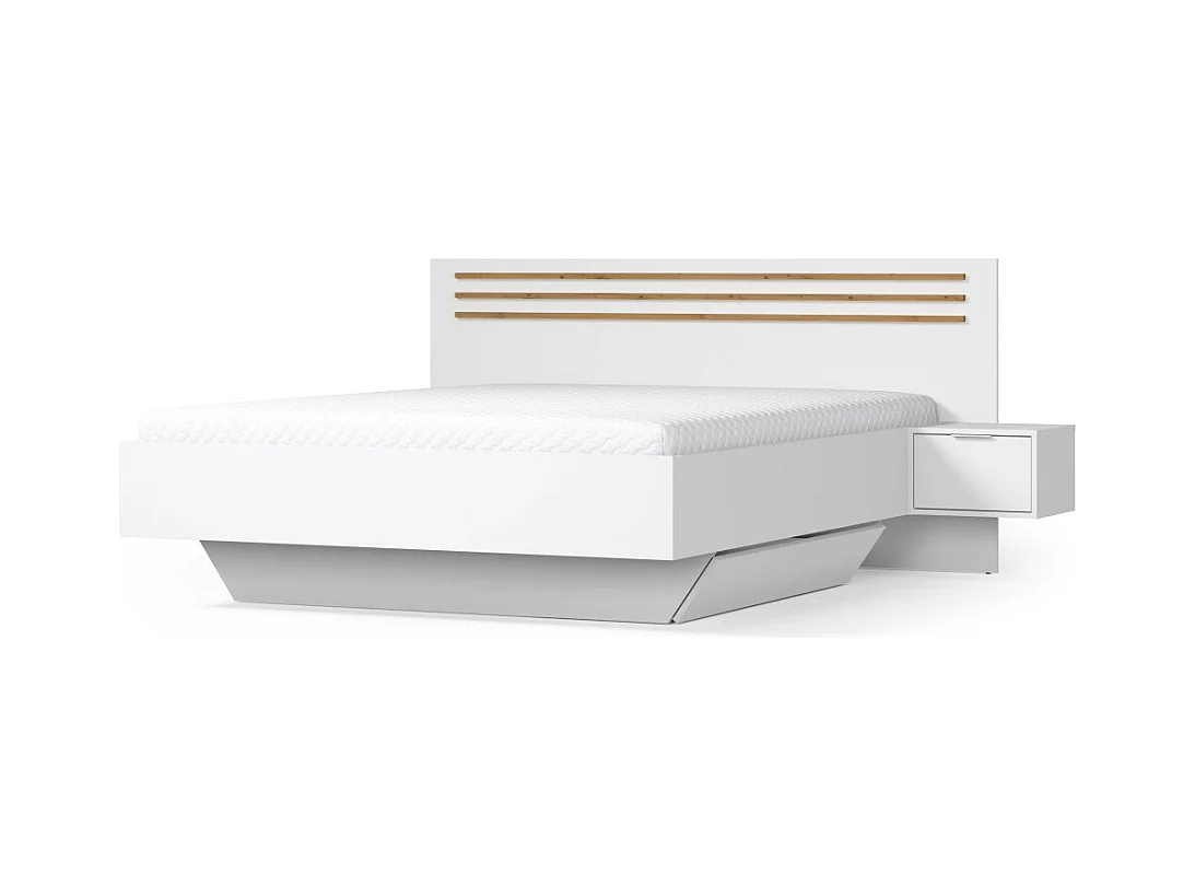 Cama de diseño 160 x 200 con LED + 2 mesitas de noche PANAREA color blanco.