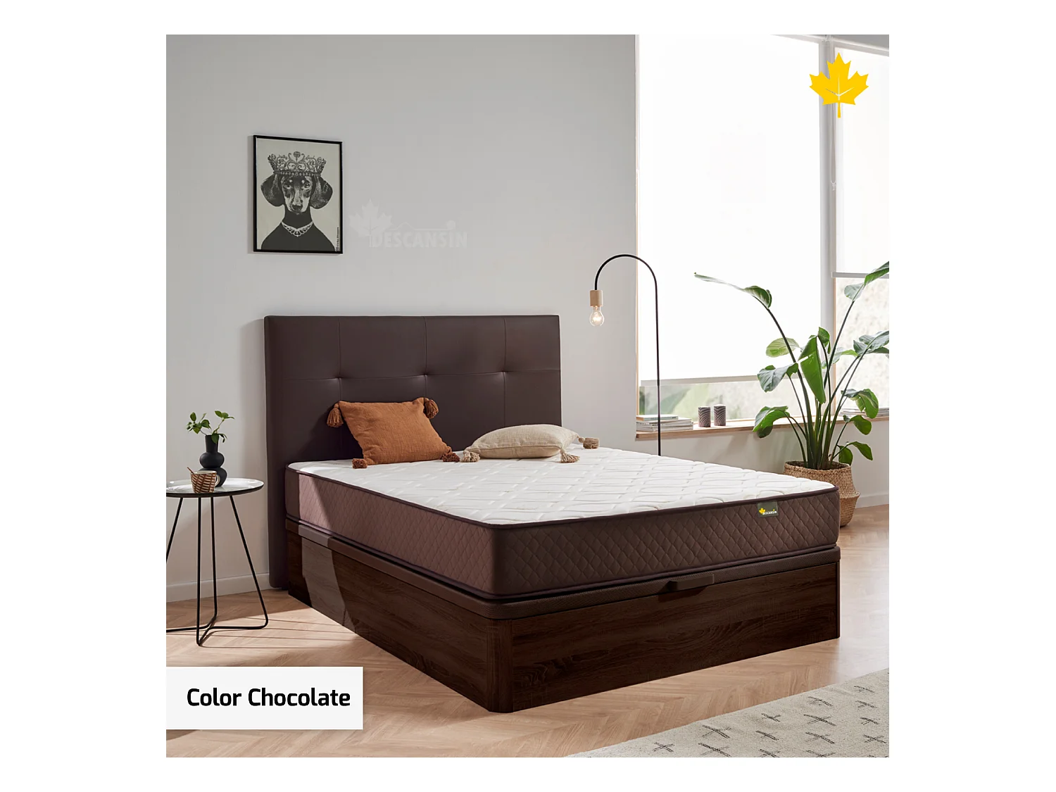 Pack Colchon + Cabecero + Canape Abatible Descansin | 135 x 190 | Chocolate | Maxima Comodidad | Gran Almacenaje