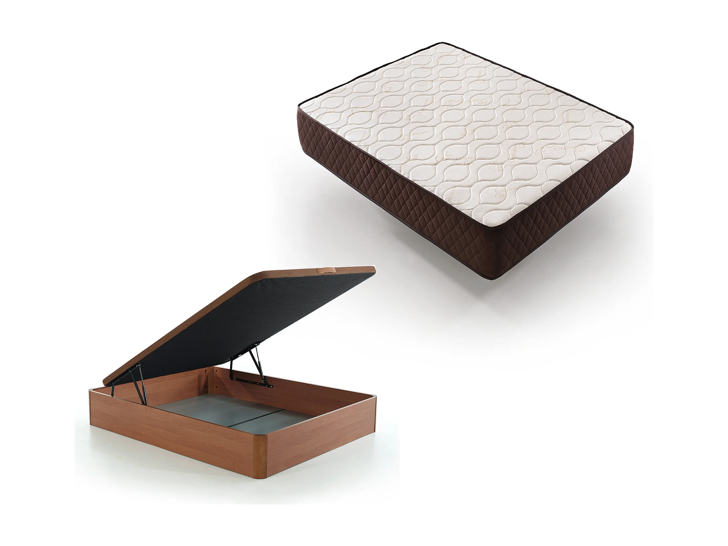 Pack Colchón Descansin + Canapé Abatible 180x200 | Color Cerezo | Maxima Comodidad | Gran Almacenaje
